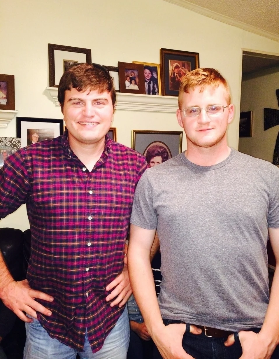 CHASE AND GRAY AT CHRISTMAS SMILING FOR MOM