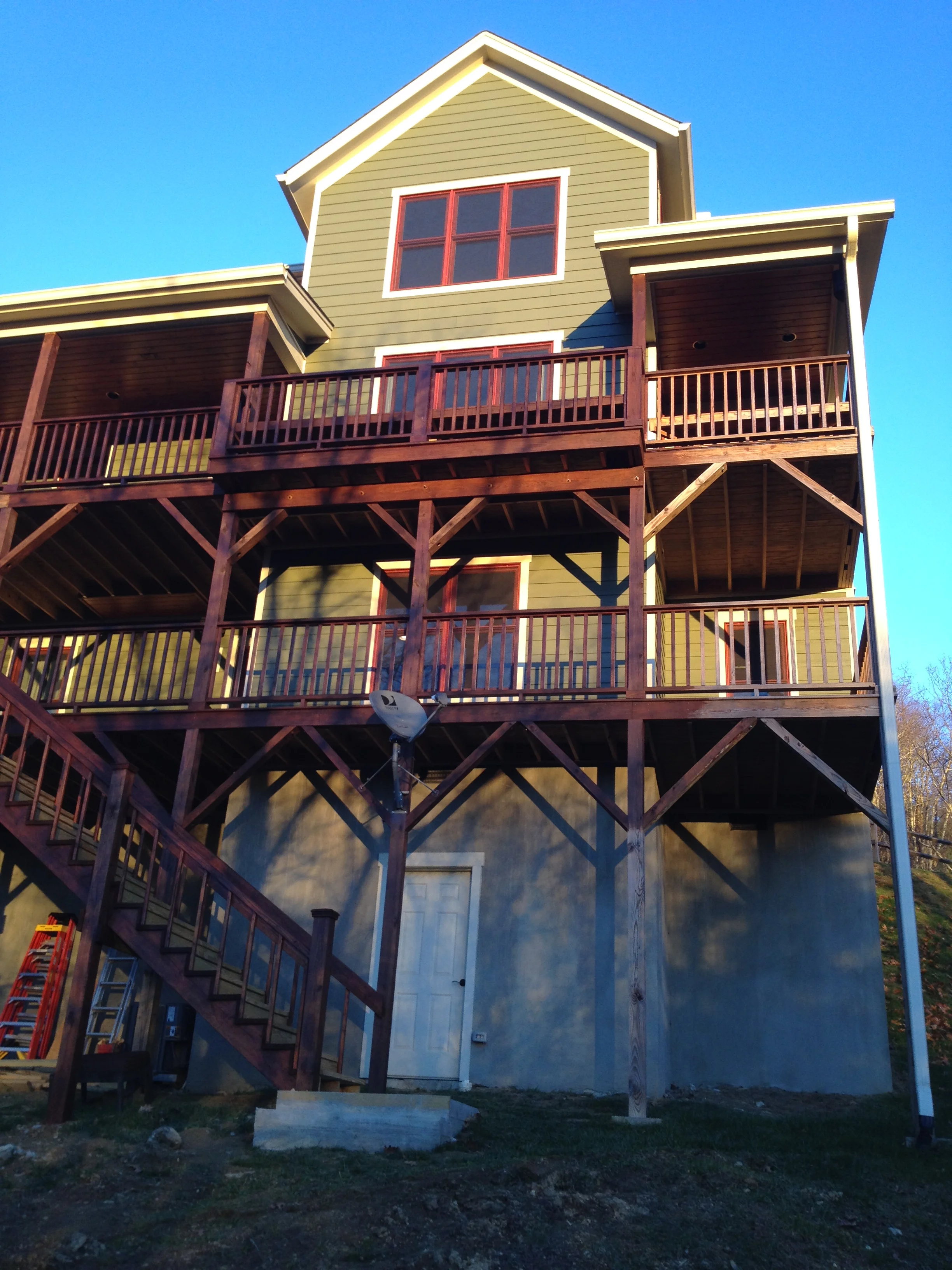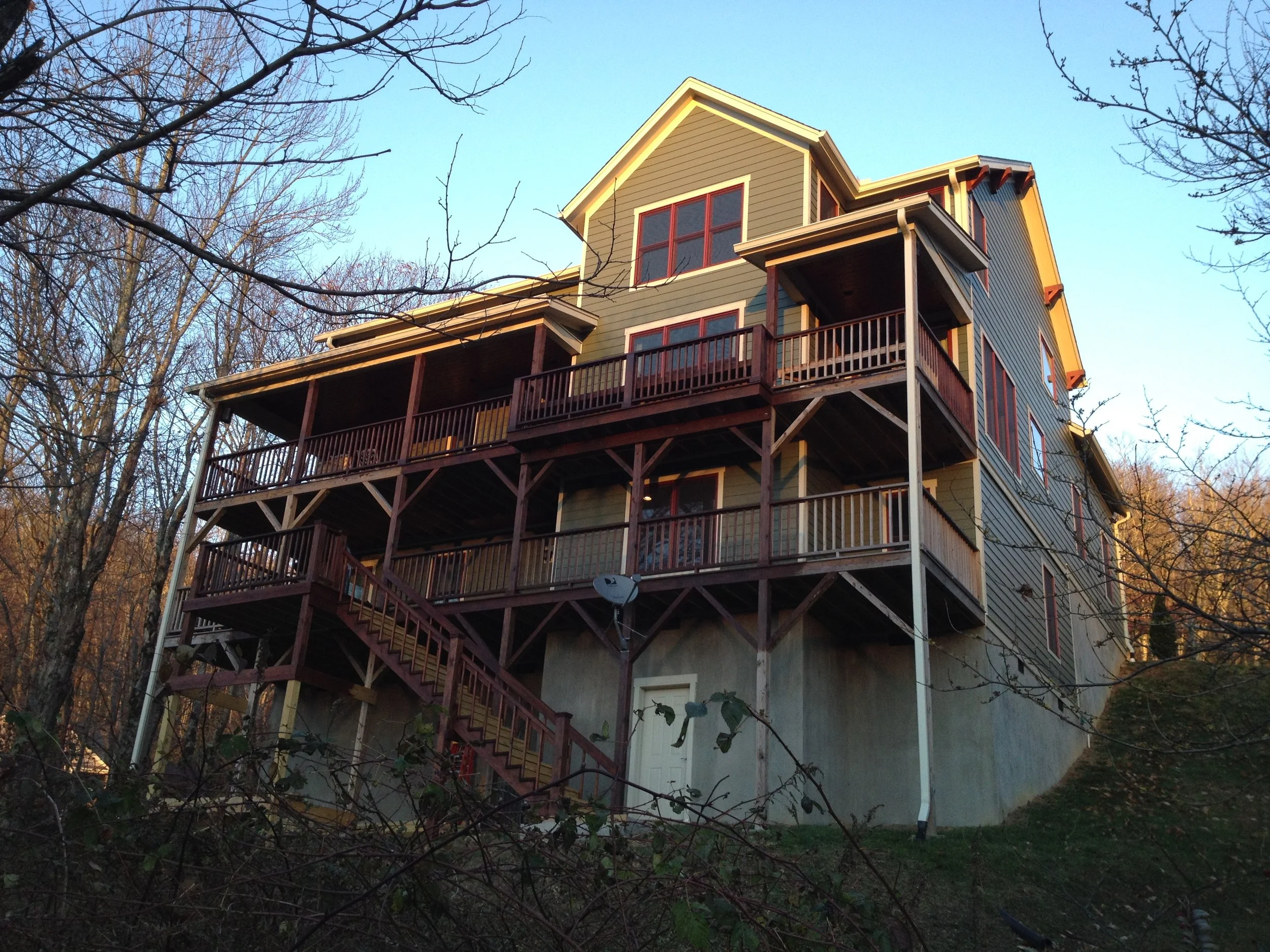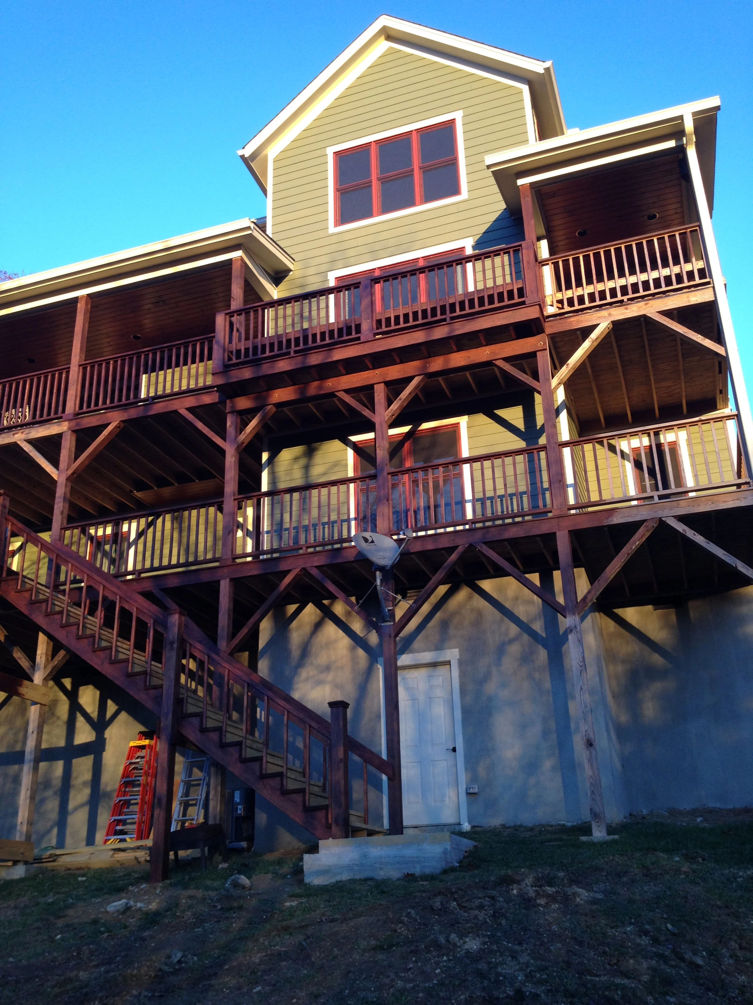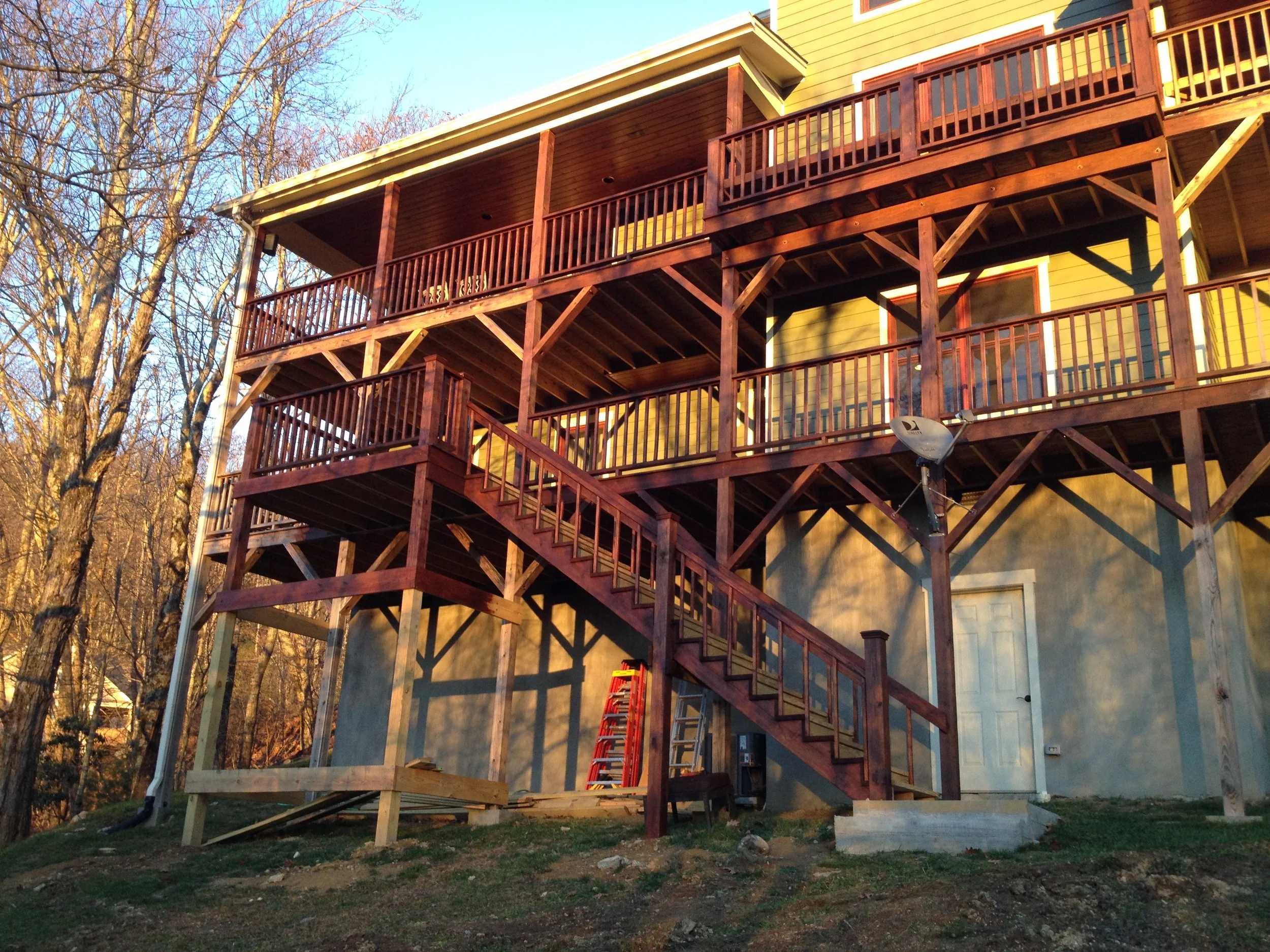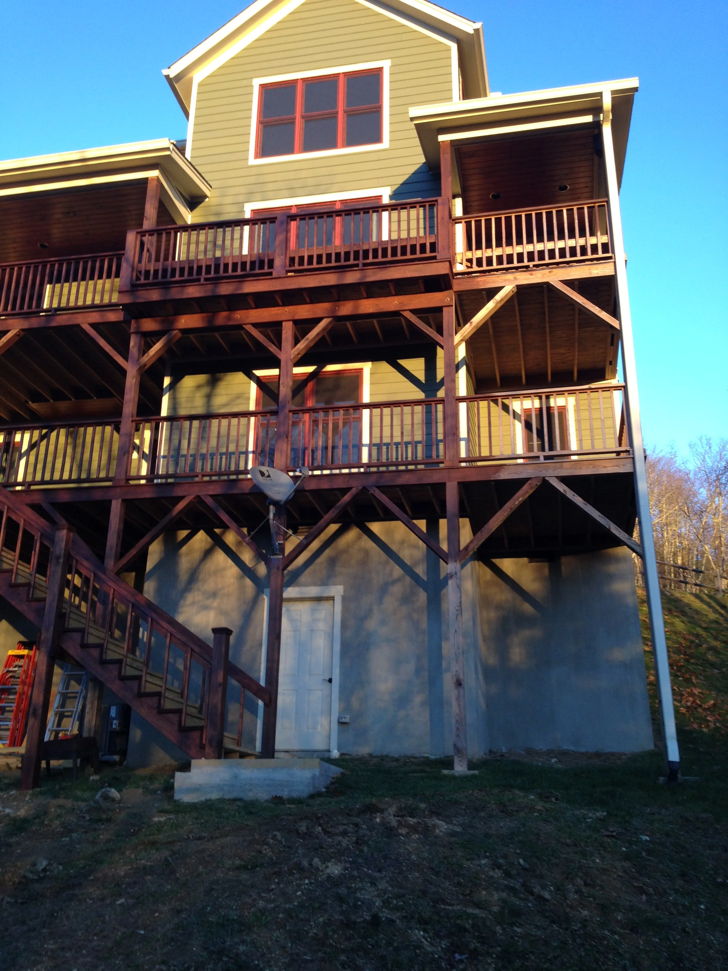 Among multiple projects at this beautiful mountain home, the exterior rear elevation was restored by repairing and restoring the deck and stairs.