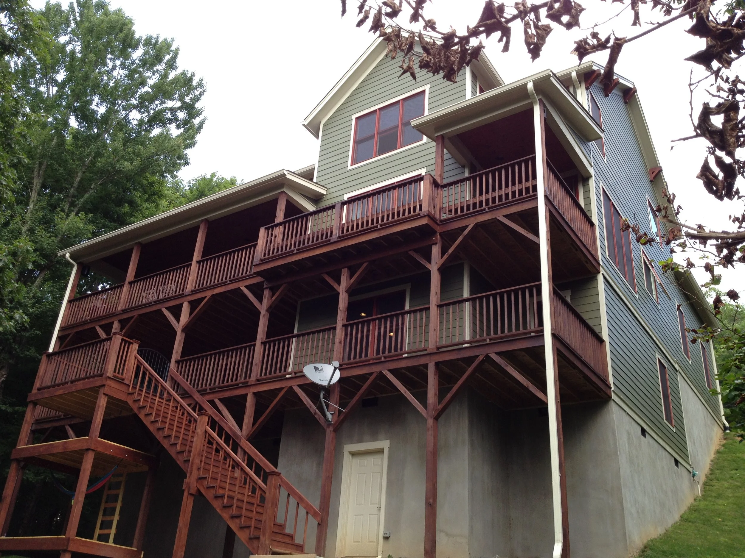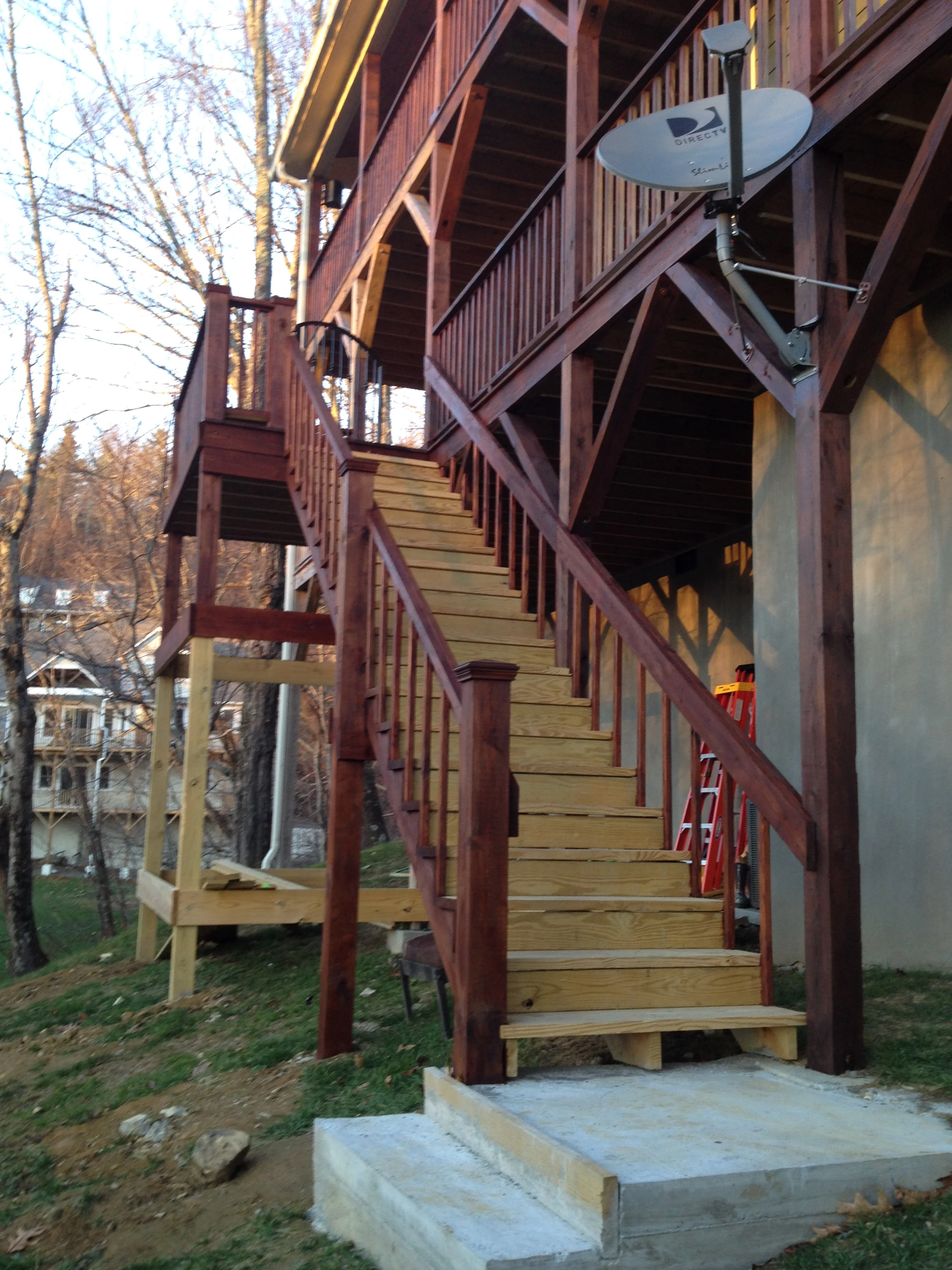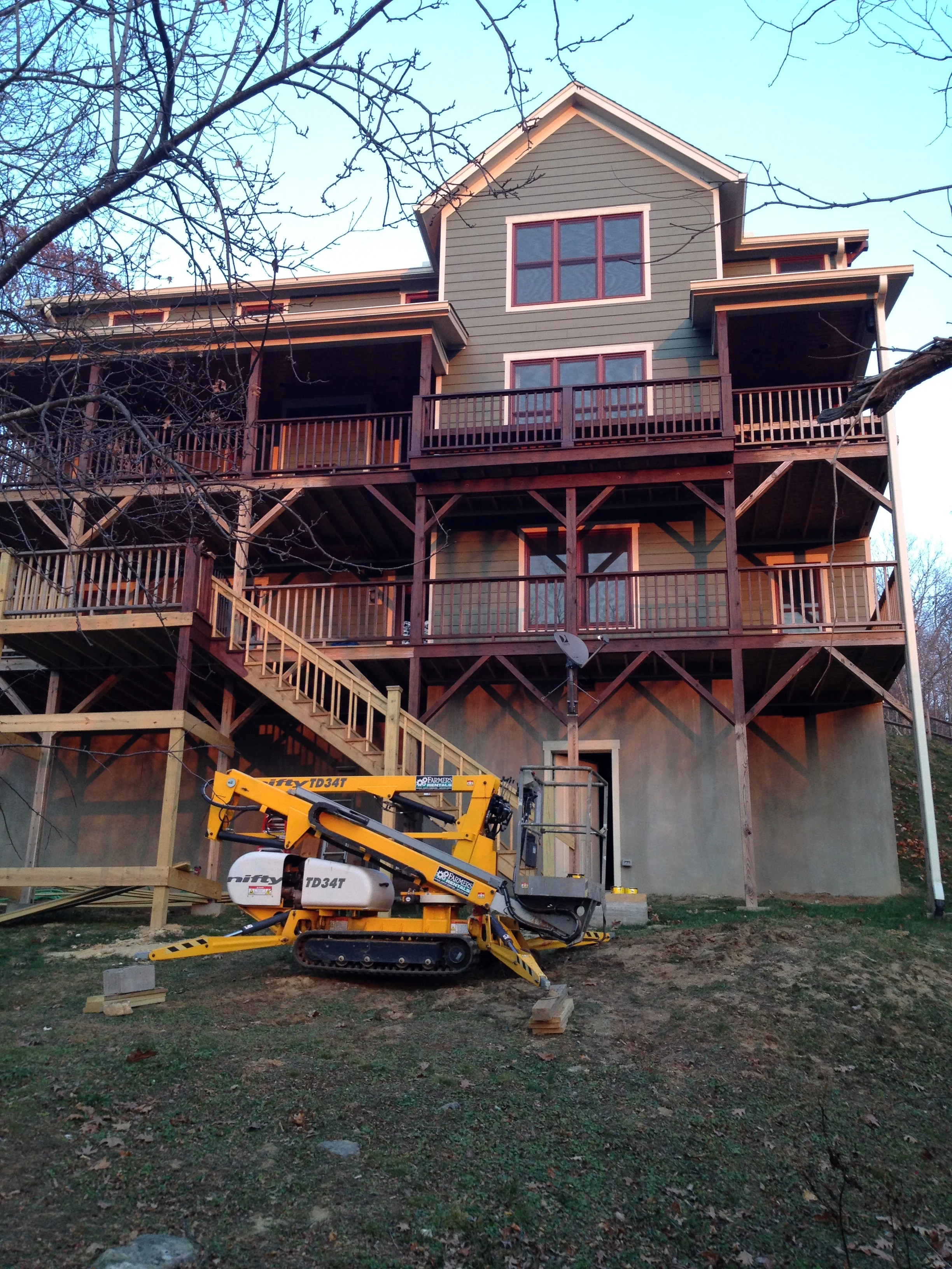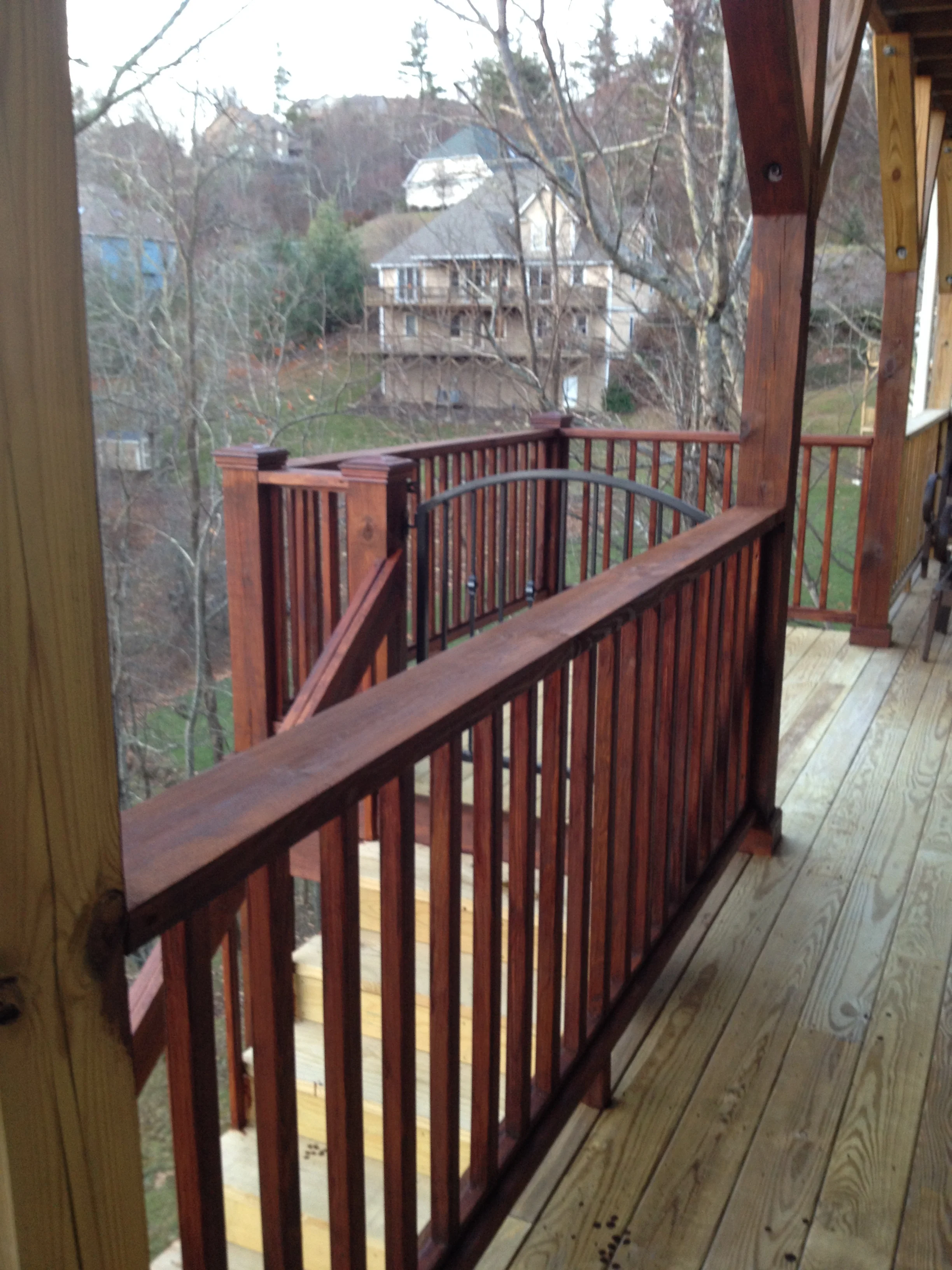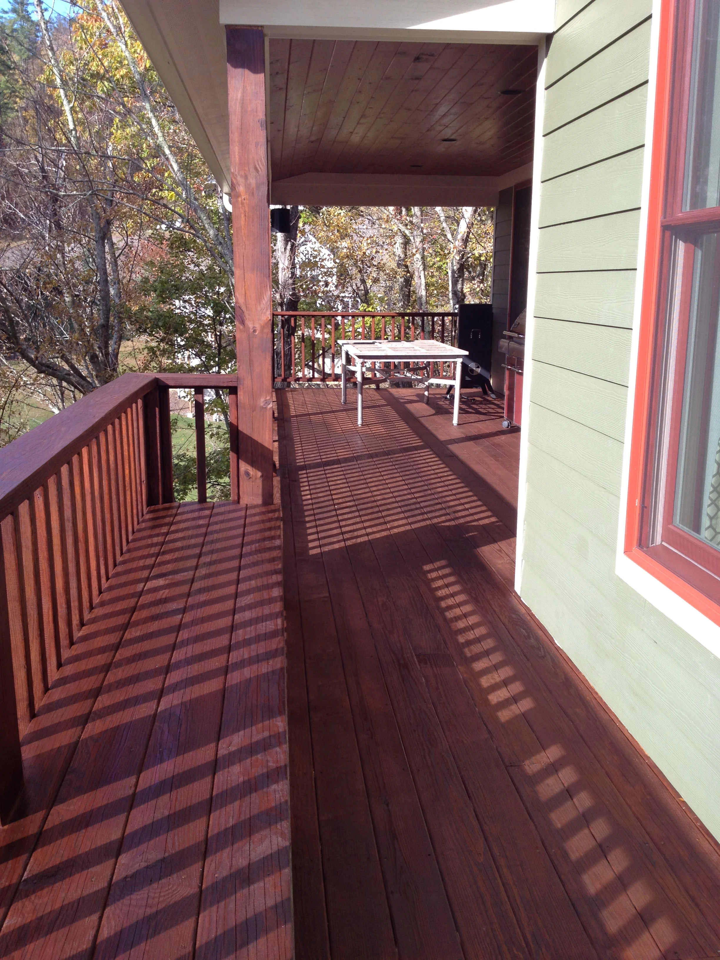 Among multiple projects at this beautiful mountain home, the exterior rear elevation was restored by repairing and restoring the deck and stairs.