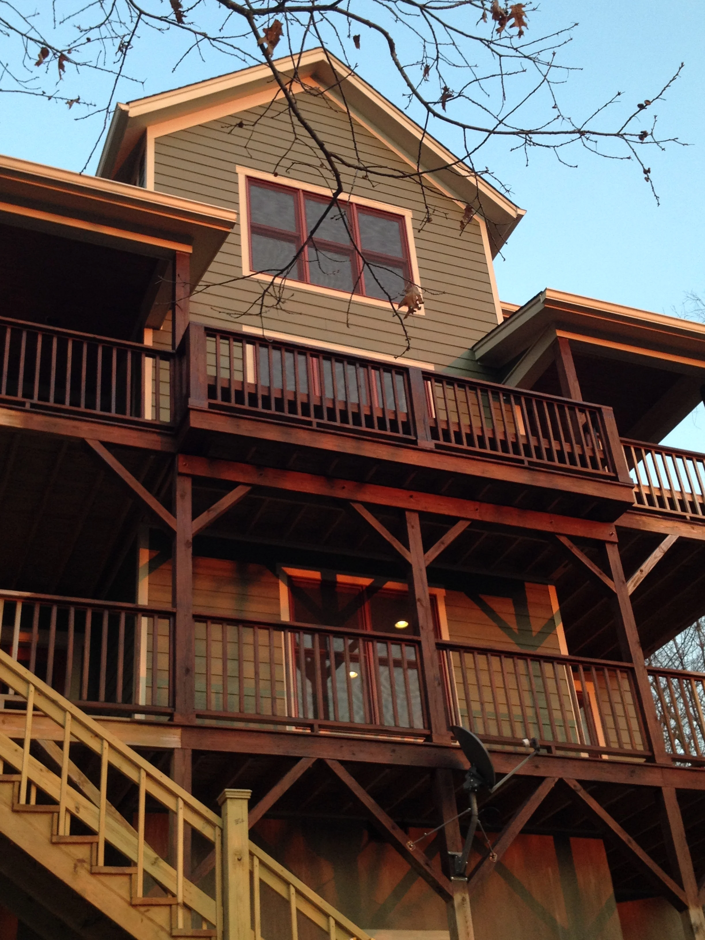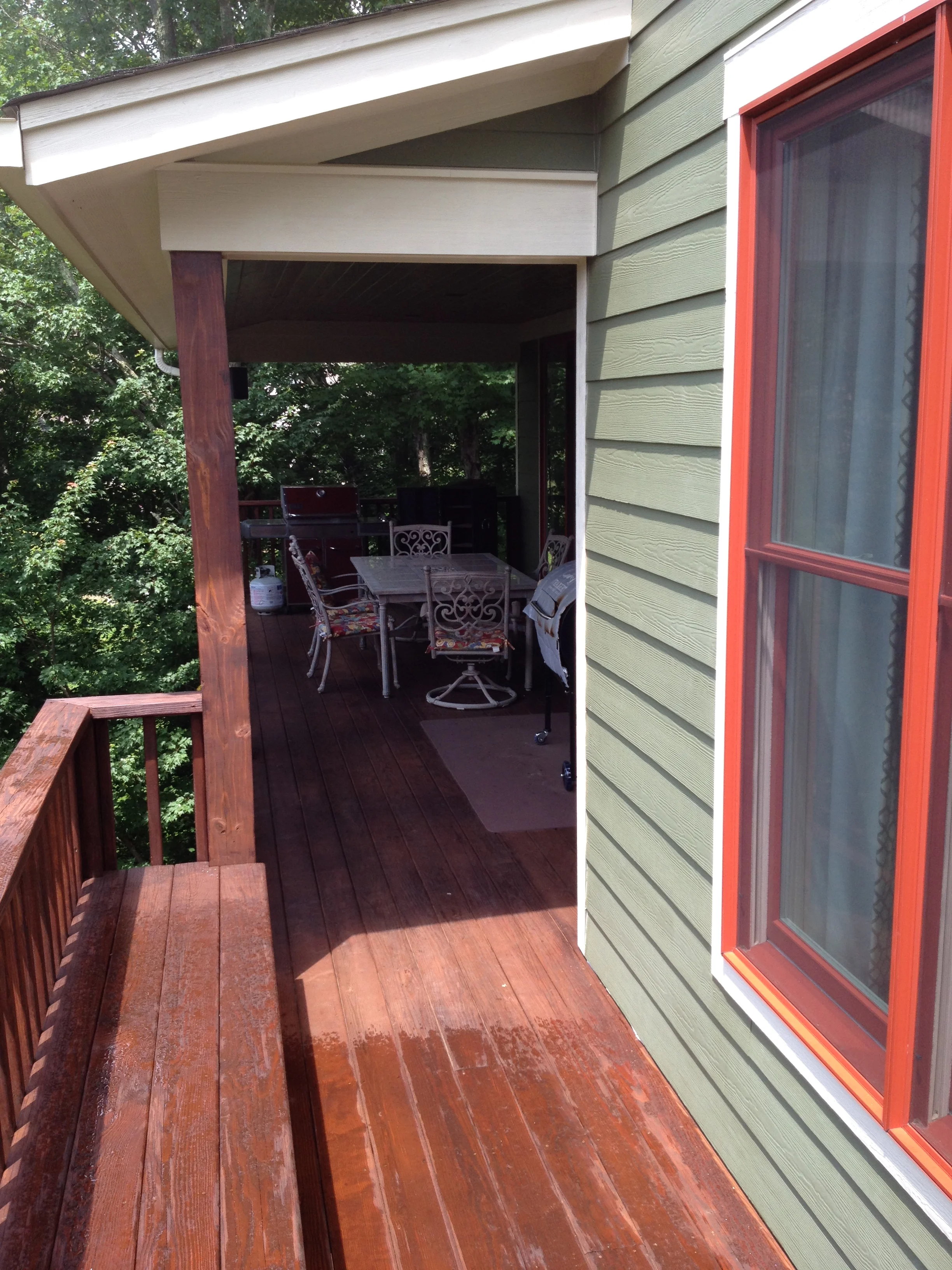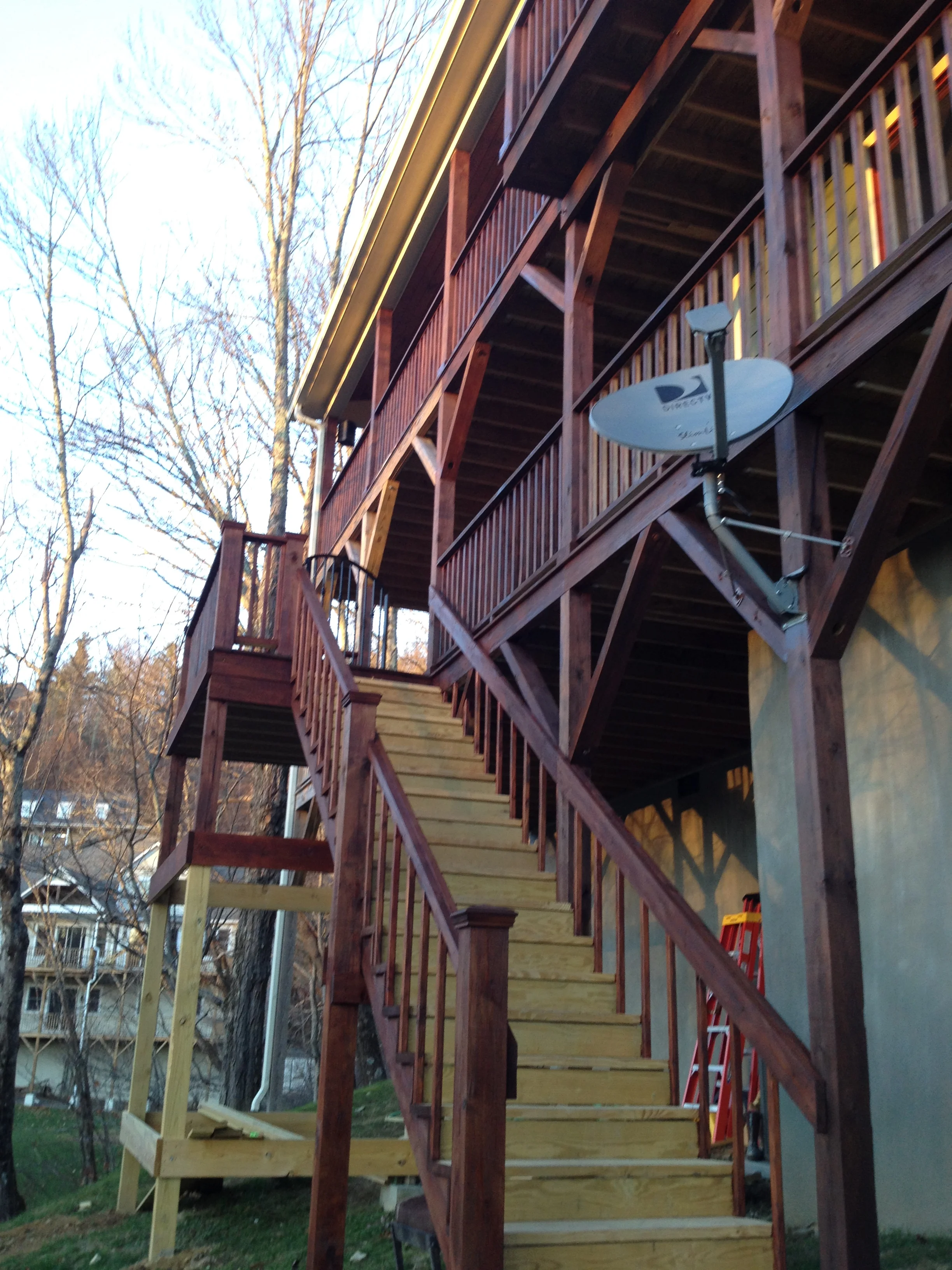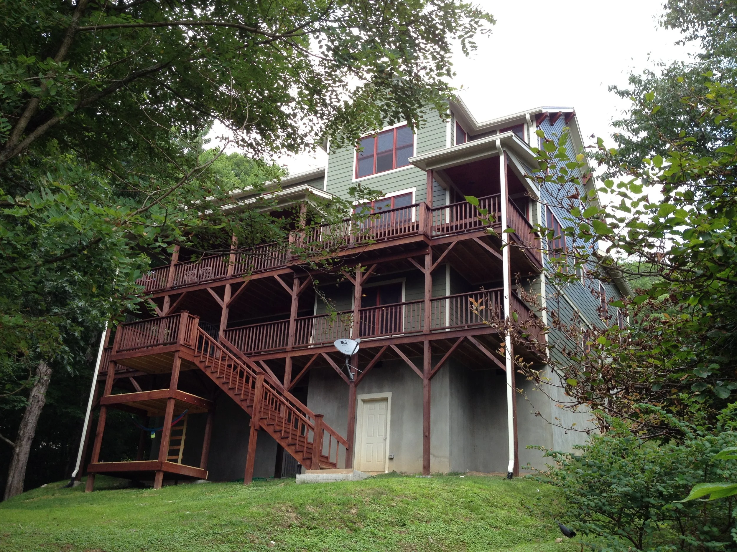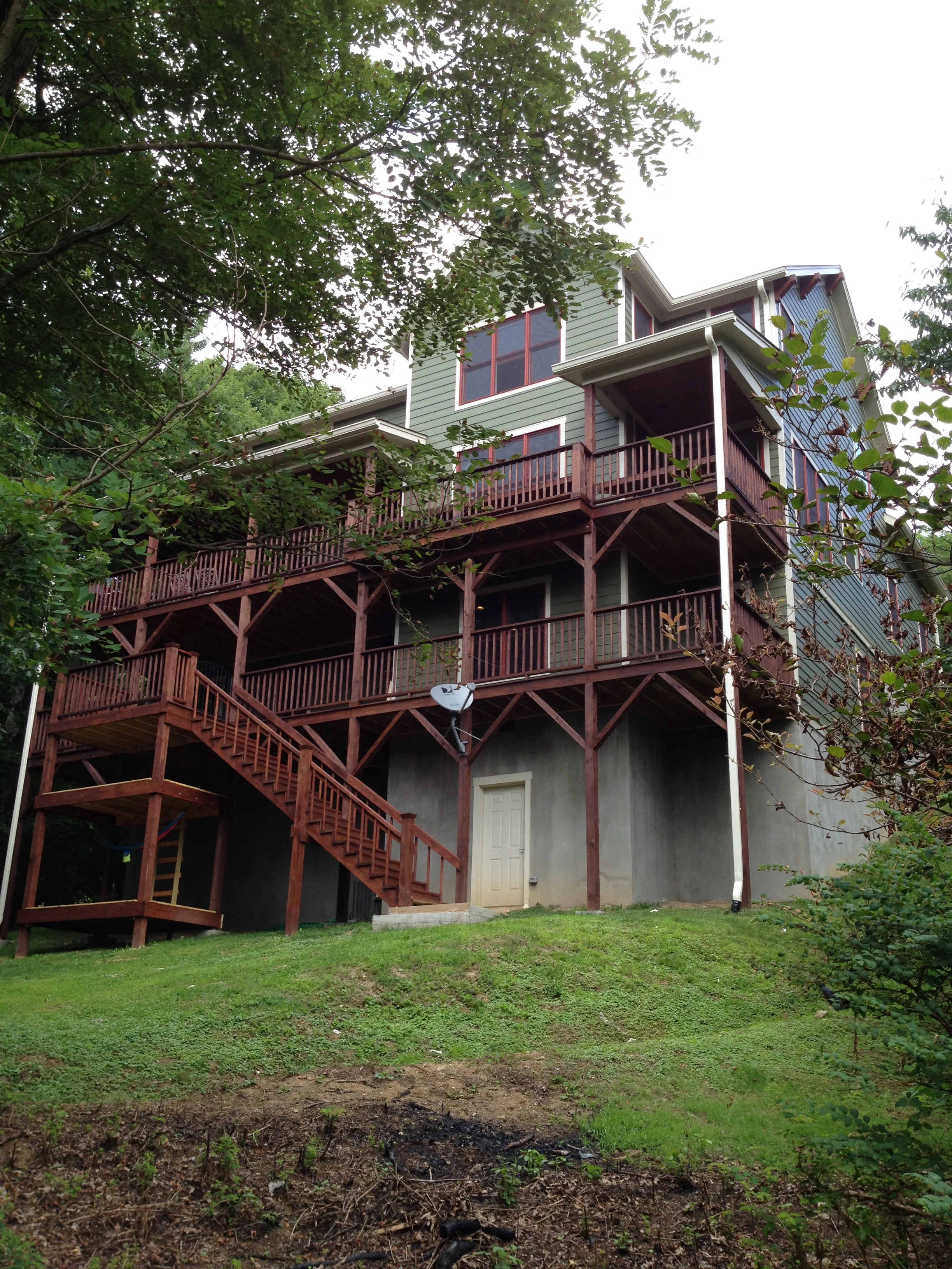 Among multiple projects at this beautiful mountain home, the exterior rear elevation was restored by repairing and restoring the deck and stairs.