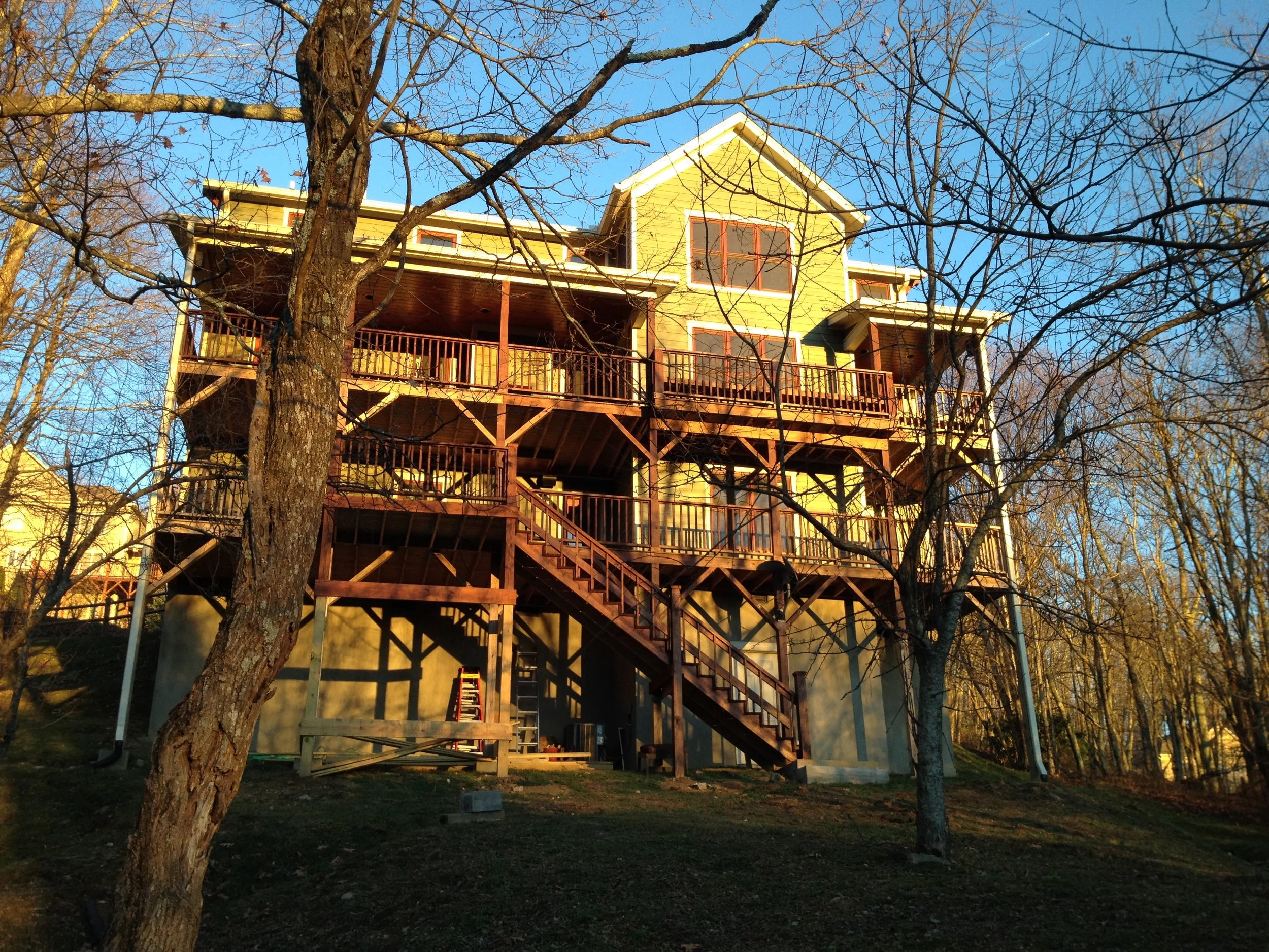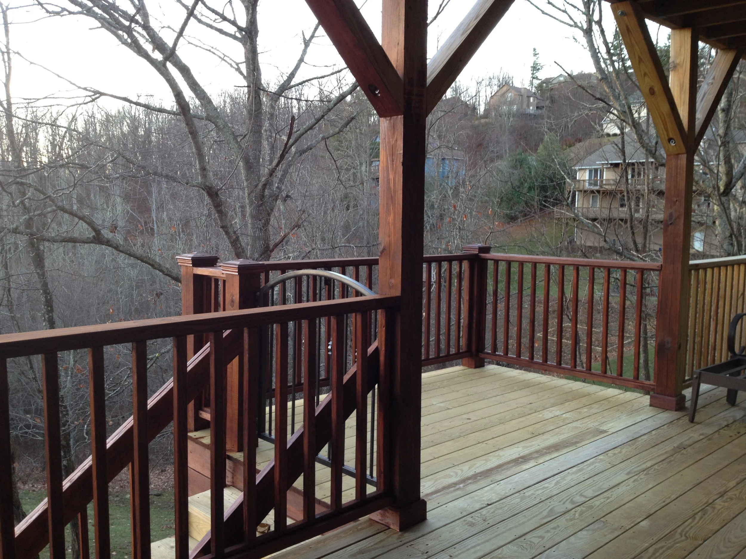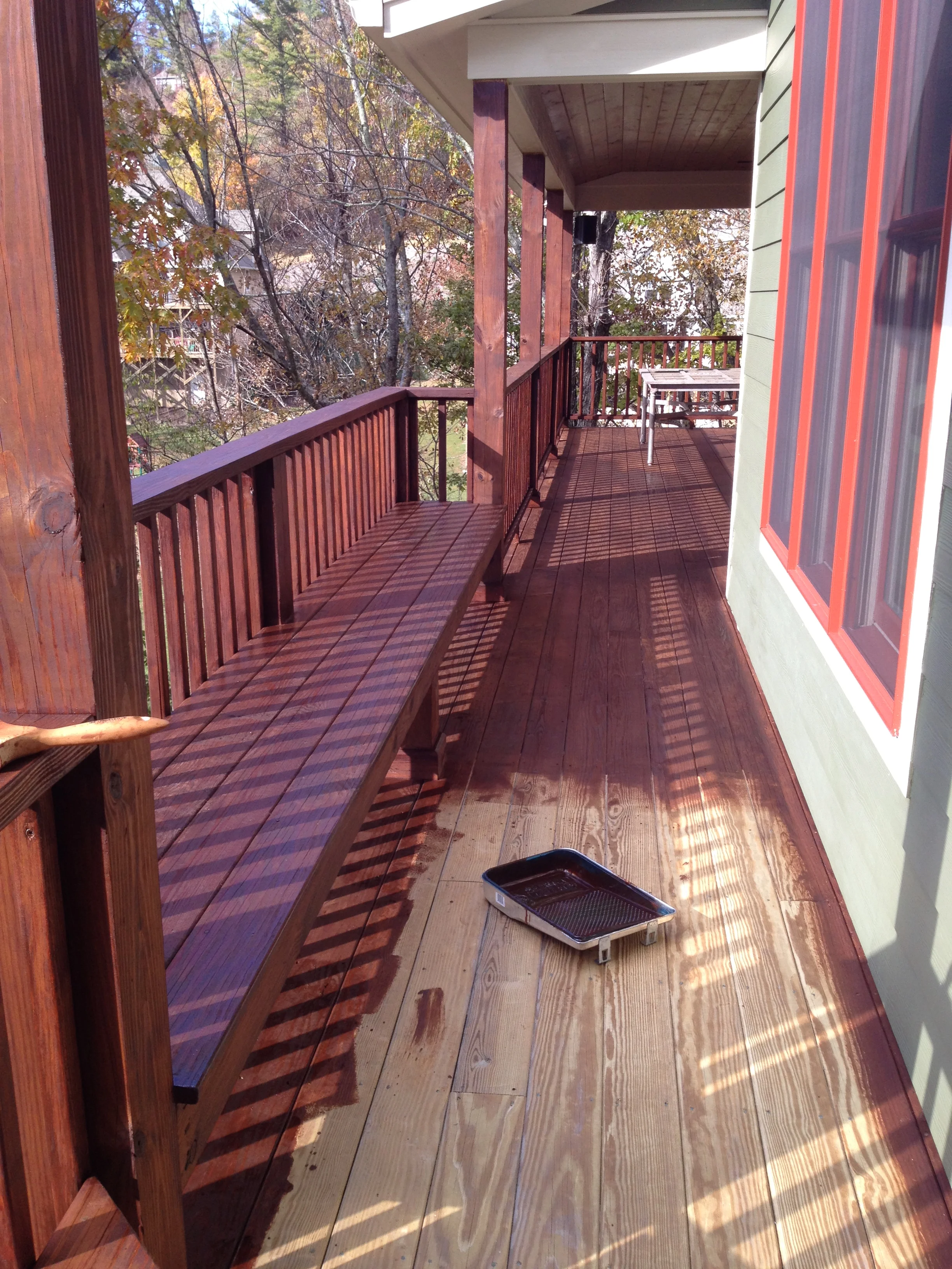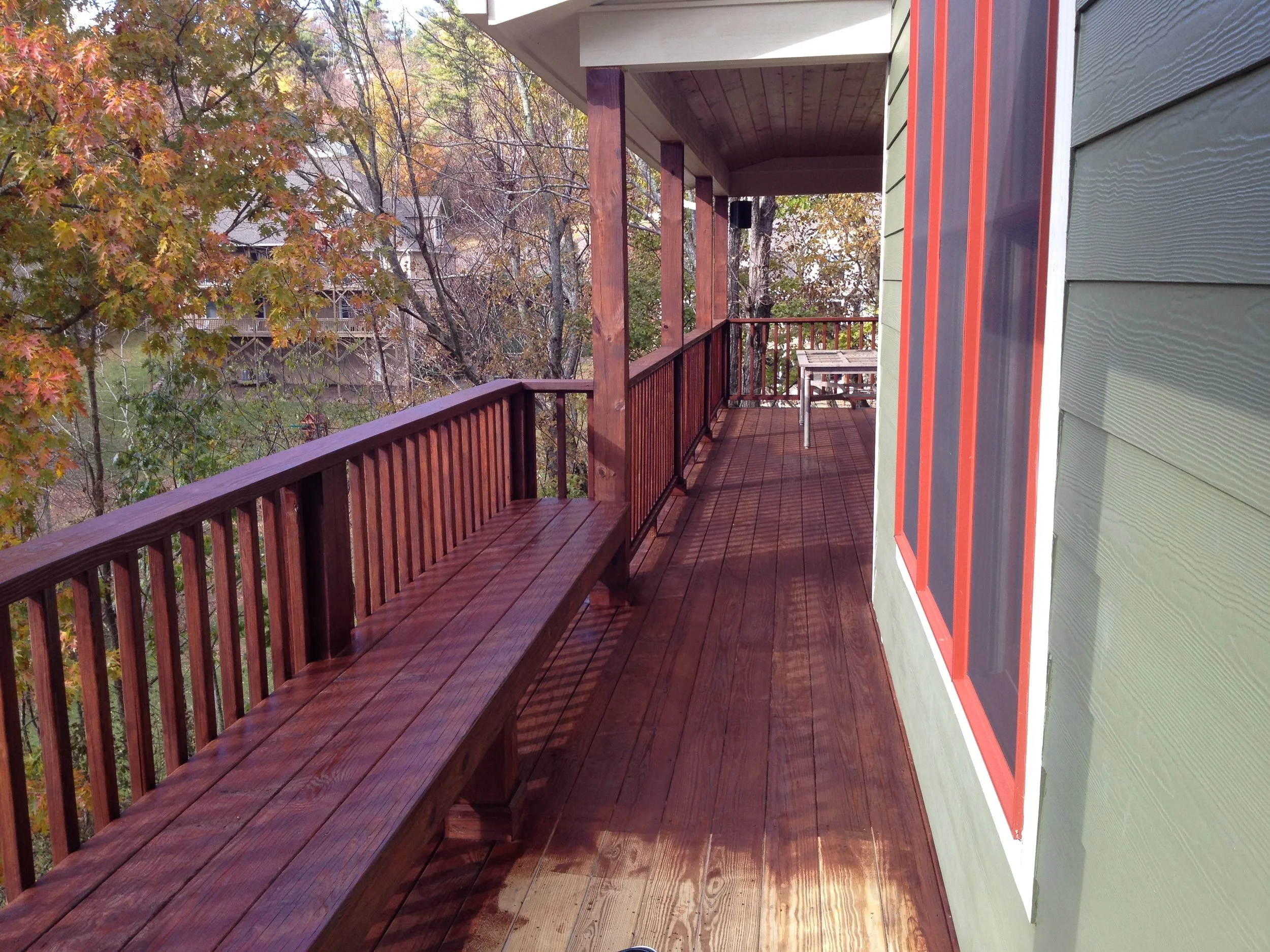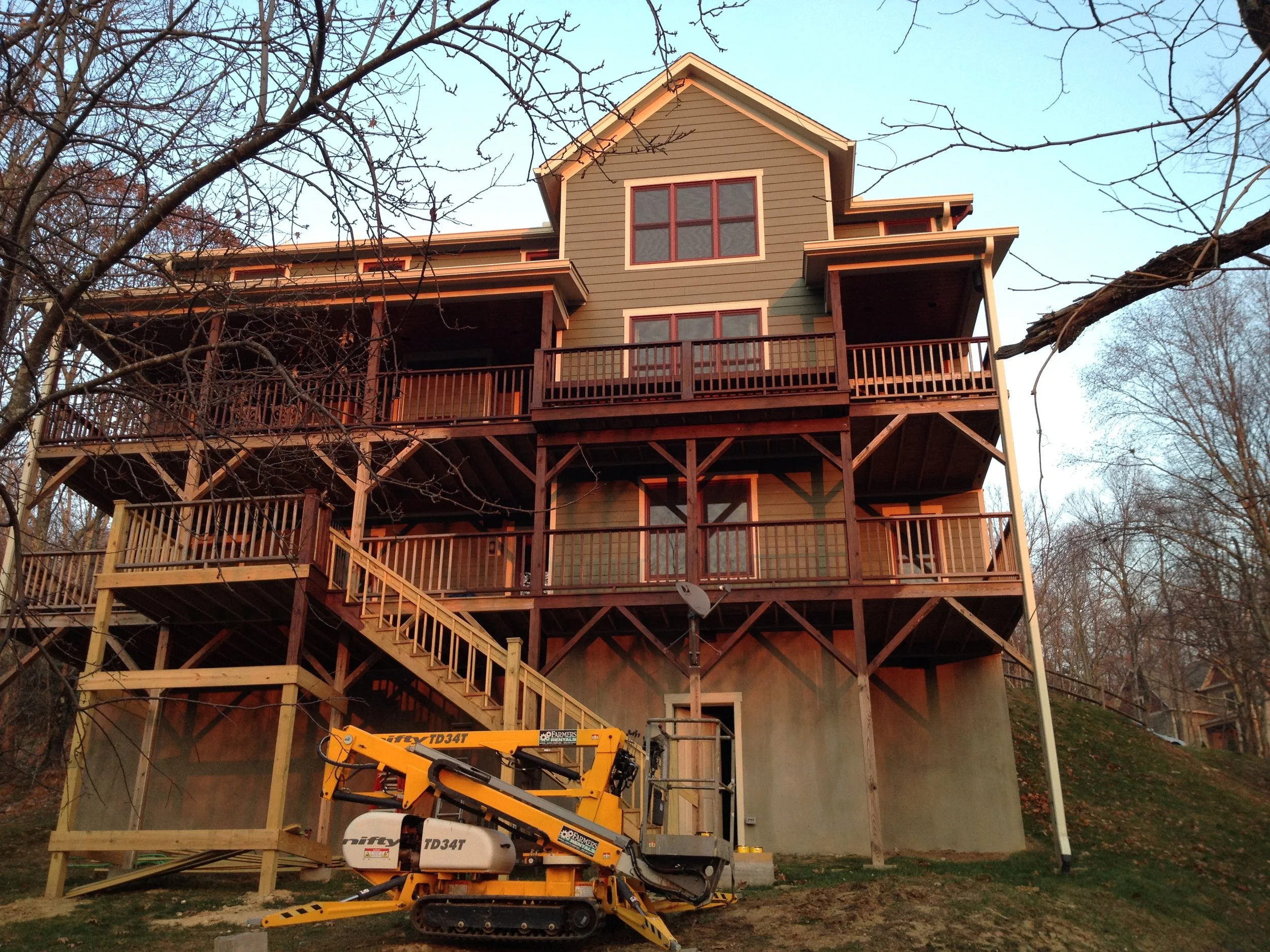 Among multiple projects at this beautiful mountain home, the exterior rear elevation was restored by repairing and restoring the deck and stairs.