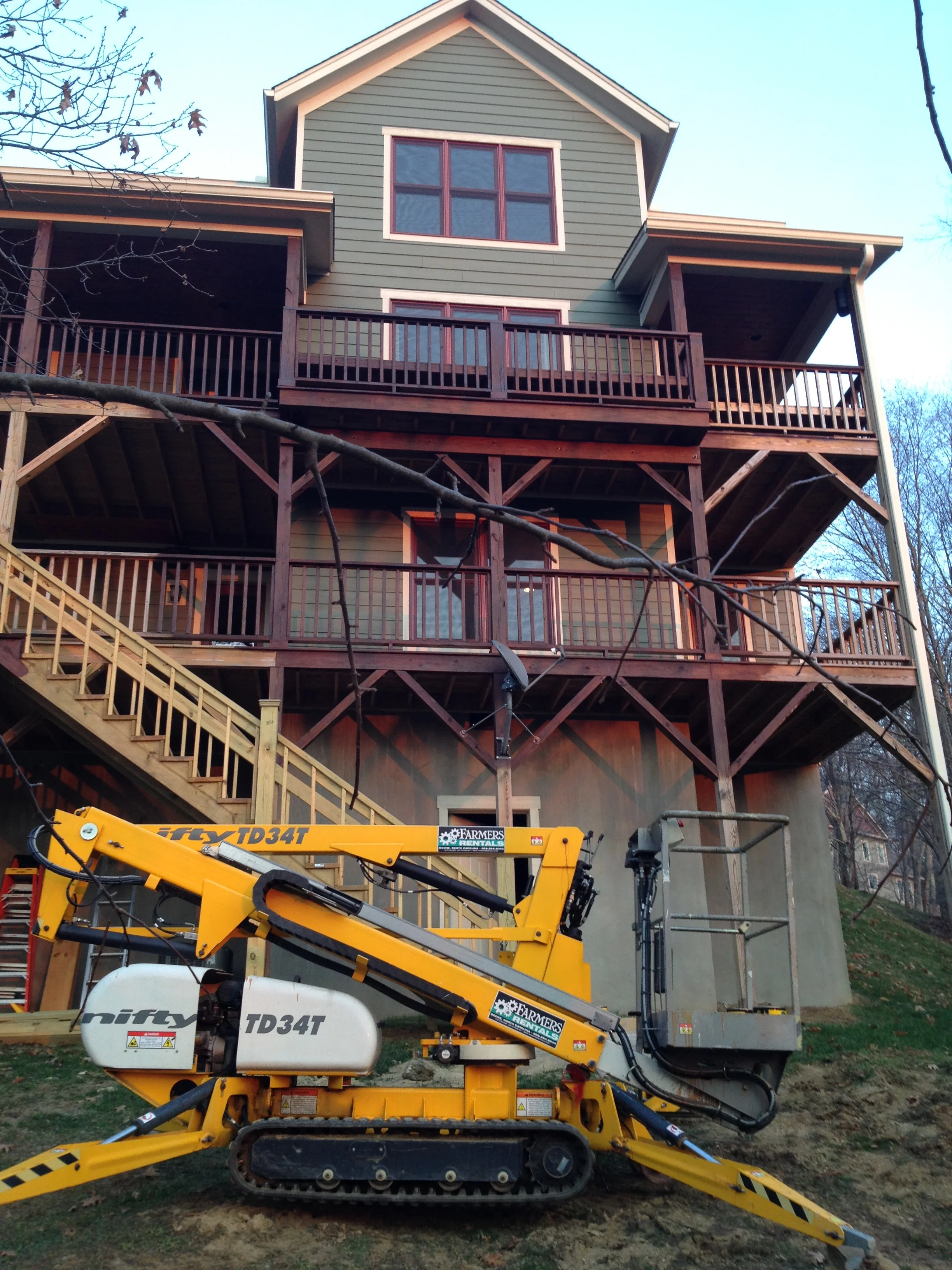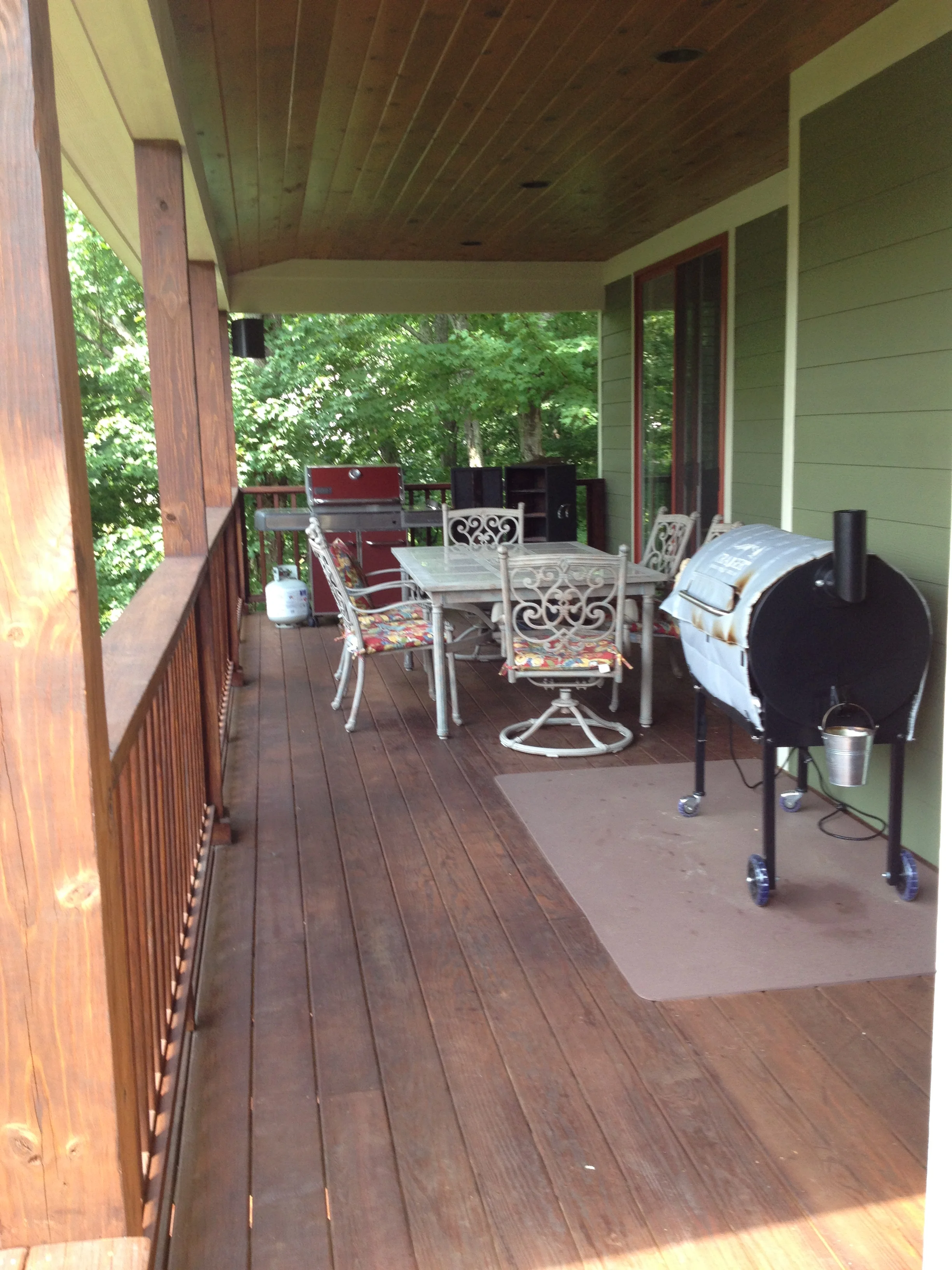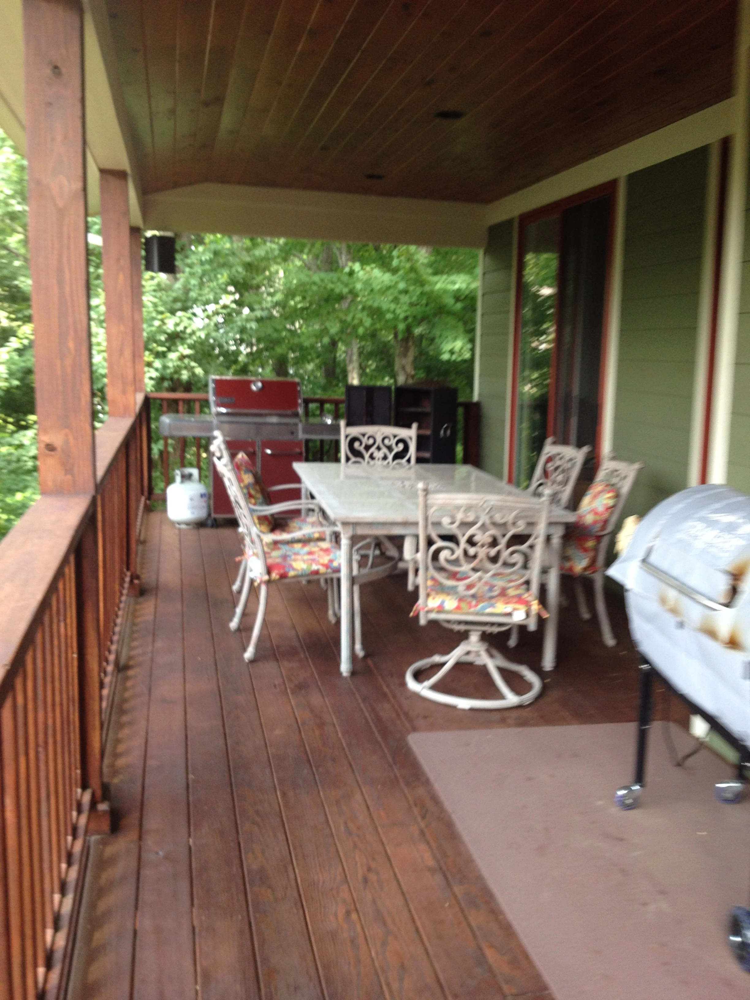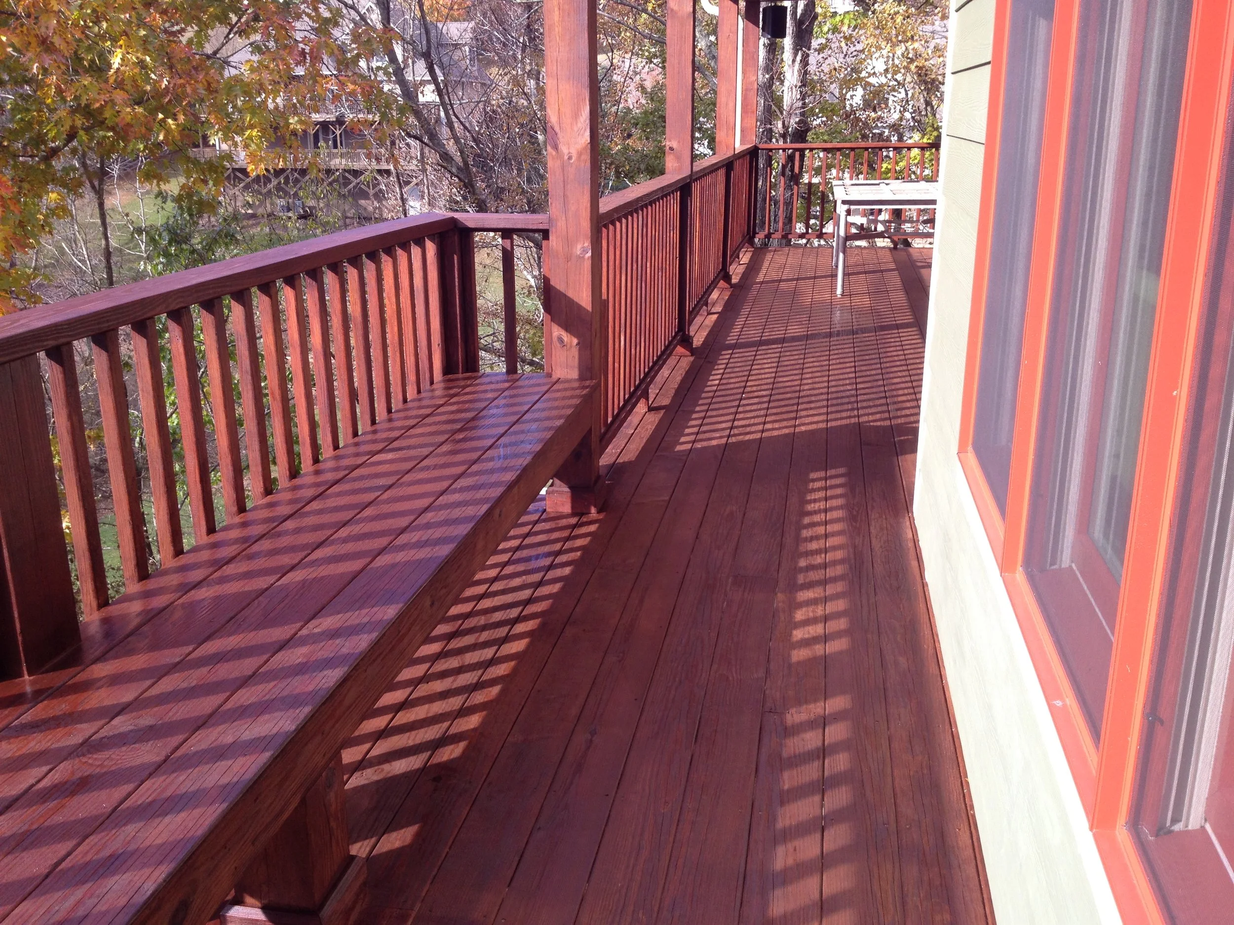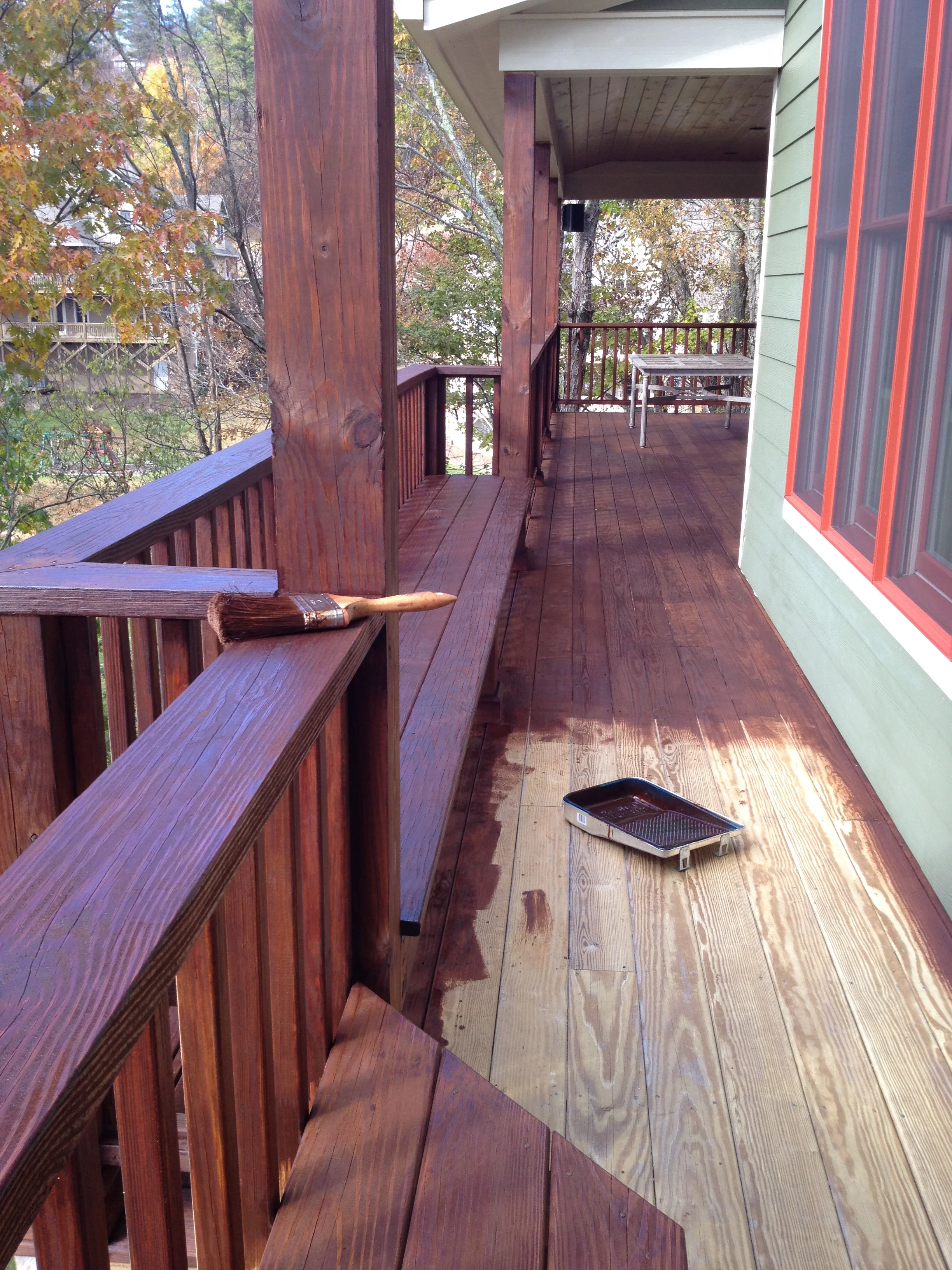 Among multiple projects at this beautiful mountain home, the exterior rear elevation was restored by repairing and restoring the deck and stairs.
