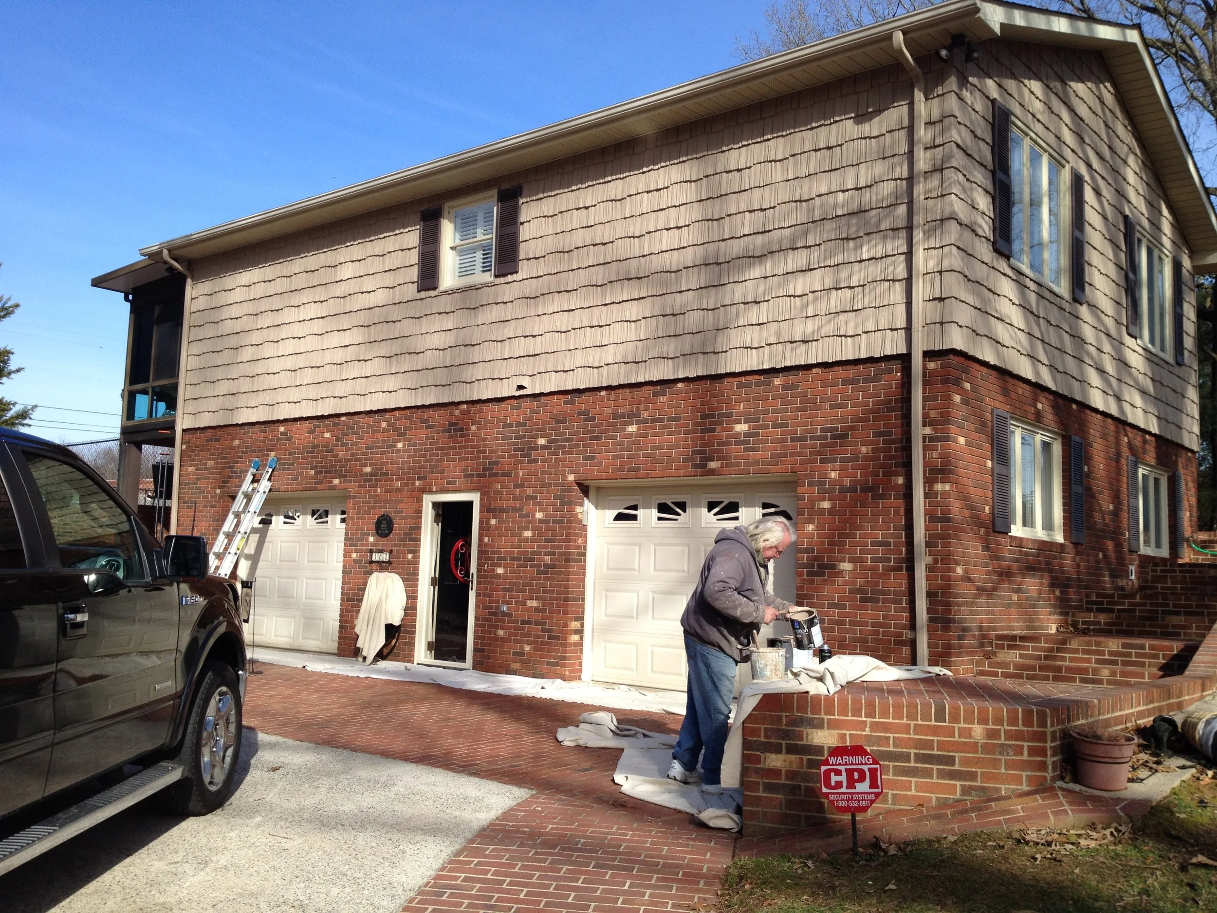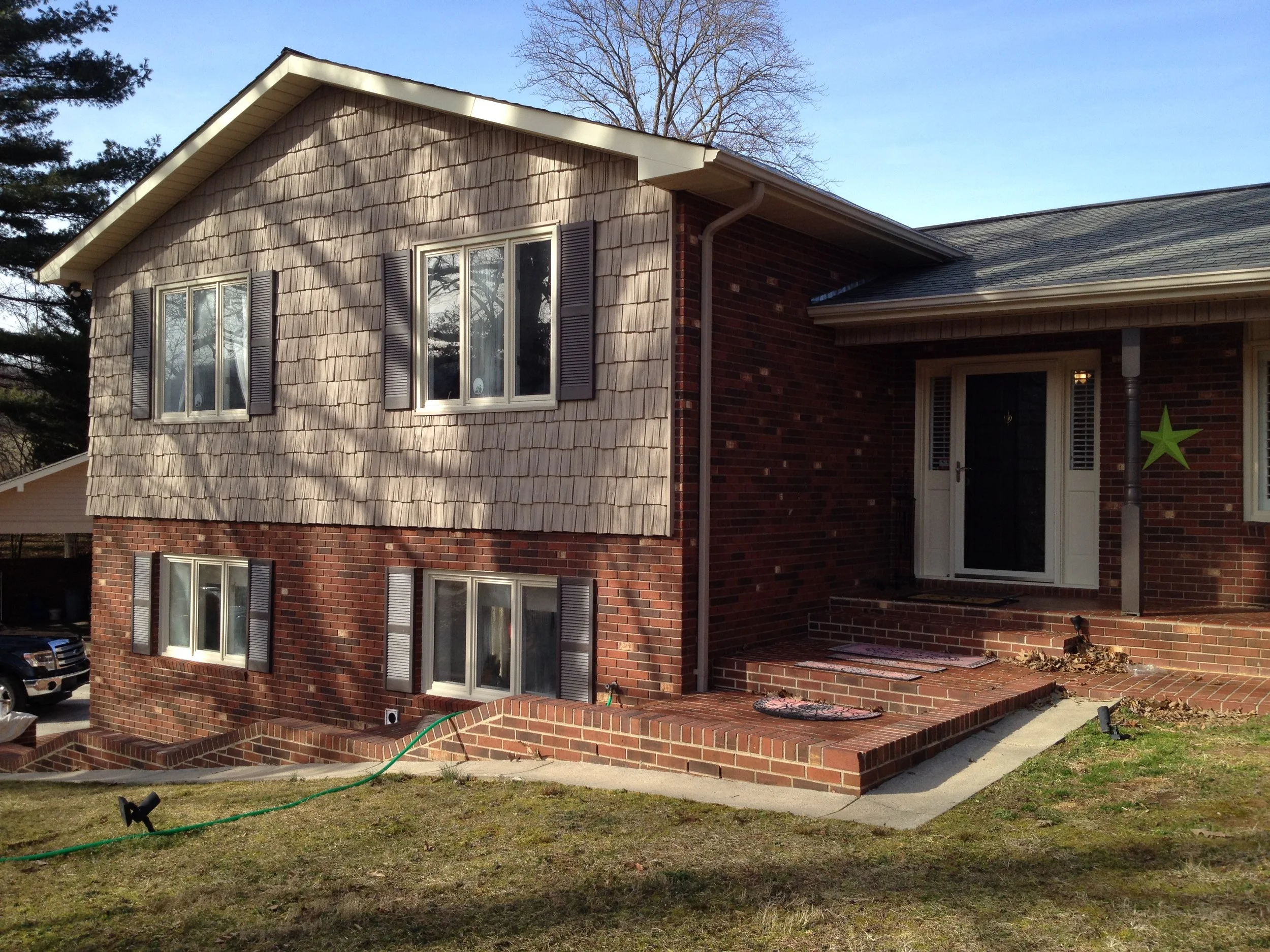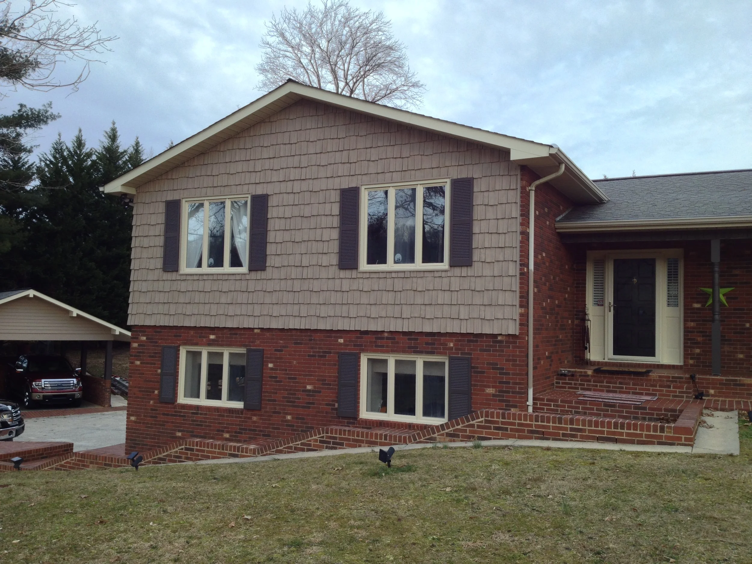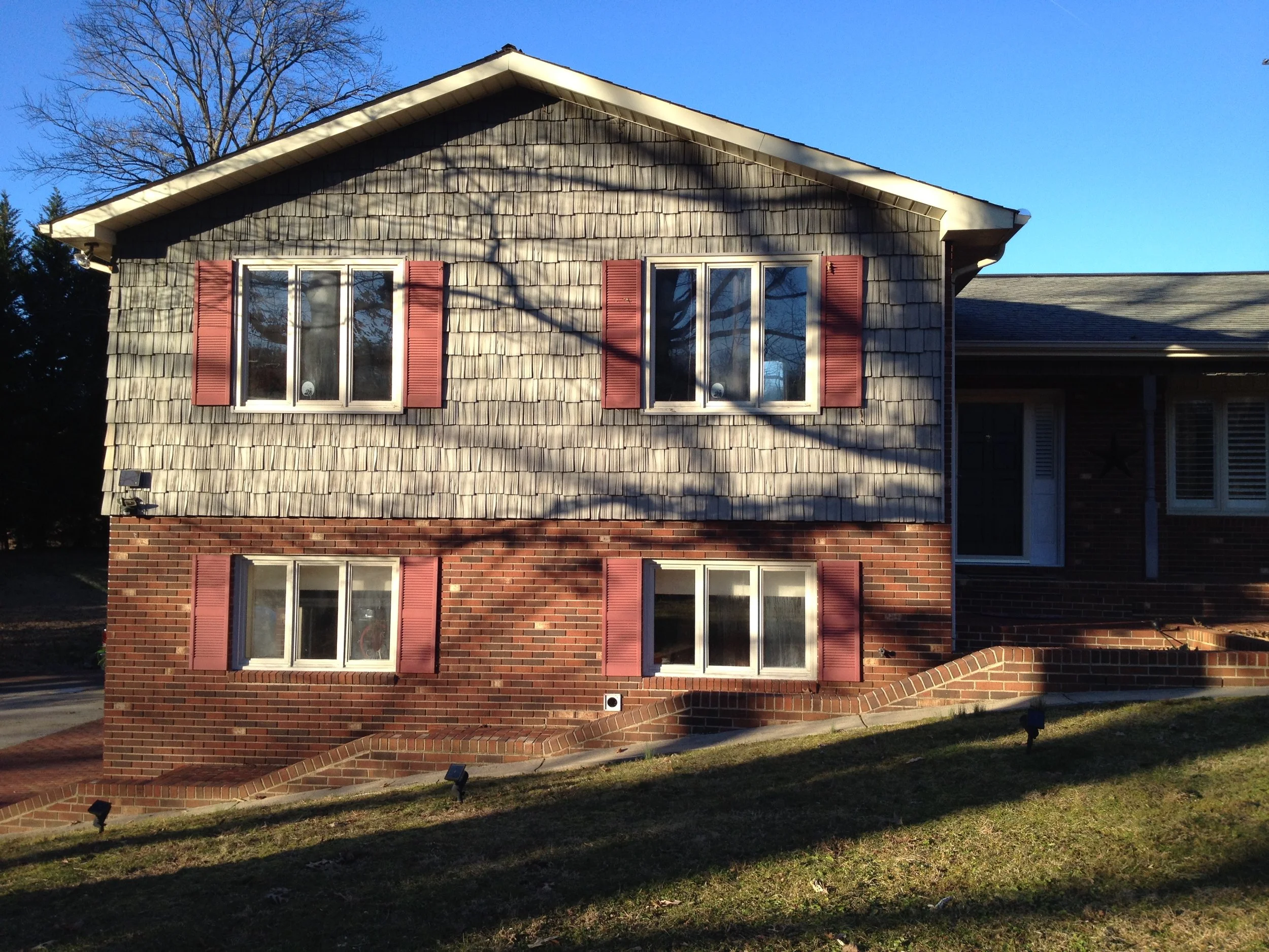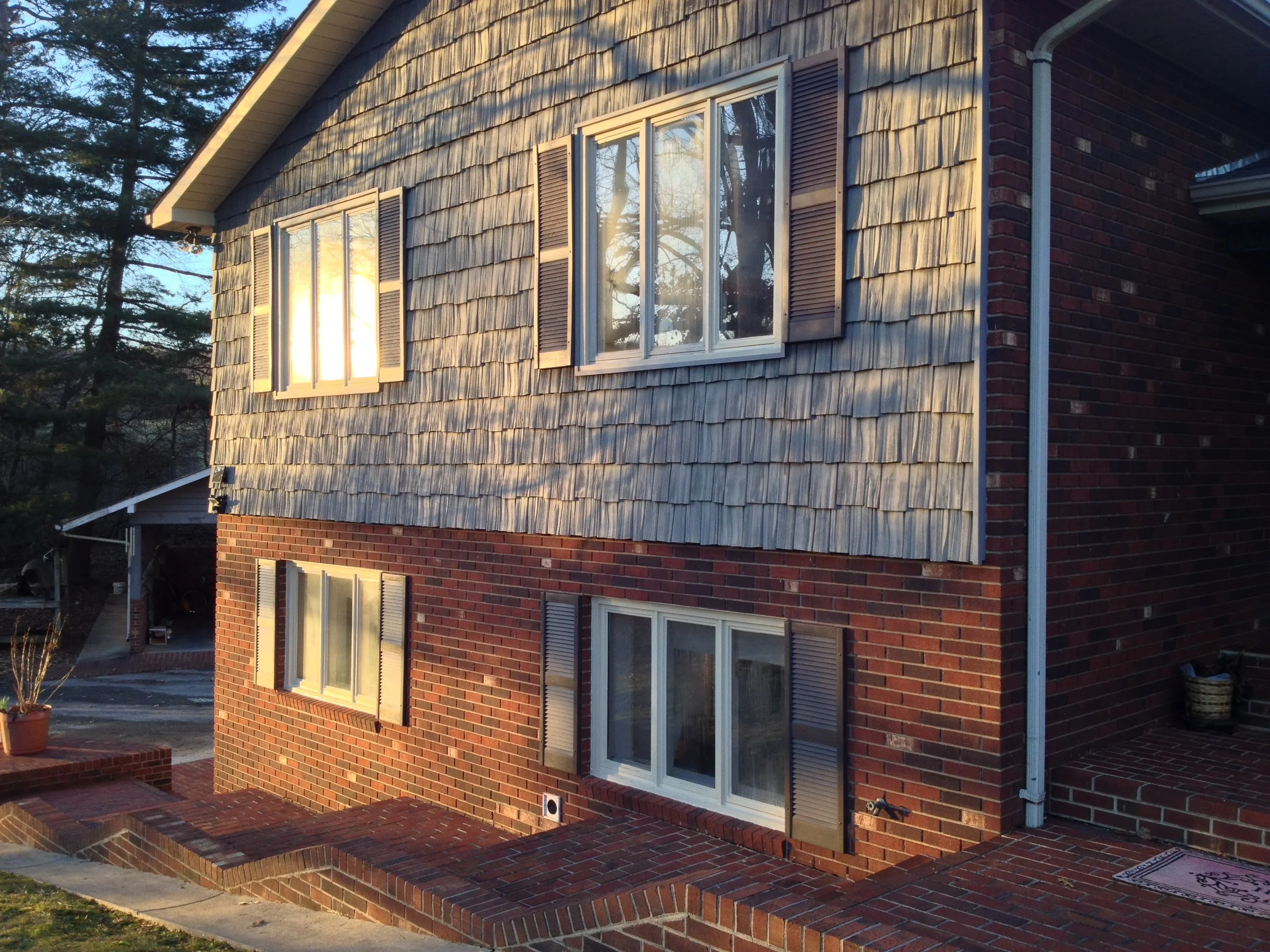 We didn't create any major transformations here, but this large and lovely home was renovated to repair and restore and update with new colors to refresh the home and add increased functionality and curb appeal. We restored and repaired the brick, updated with new colors and for all siding, trim, windows and doors, repaired and replaced windows and doors, repaired exterior trim and repainted the entire exterior, as well as did repairs to and restored the walkways, driveway and the rest of the property's exterior.