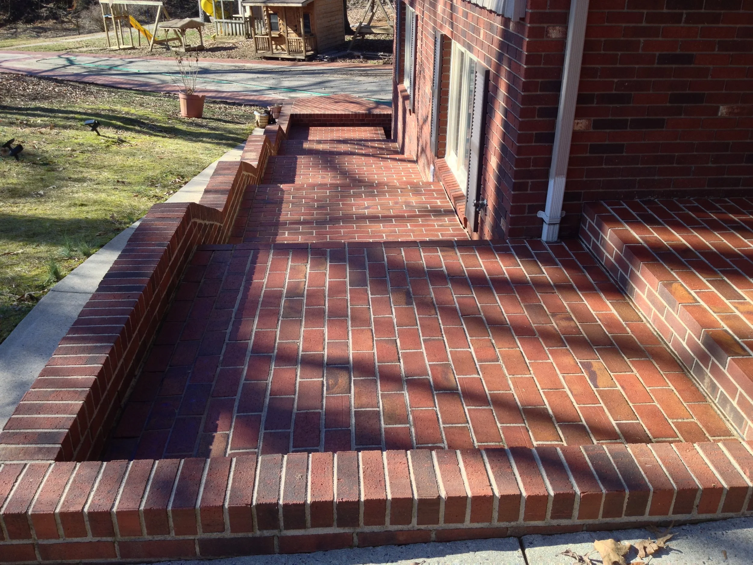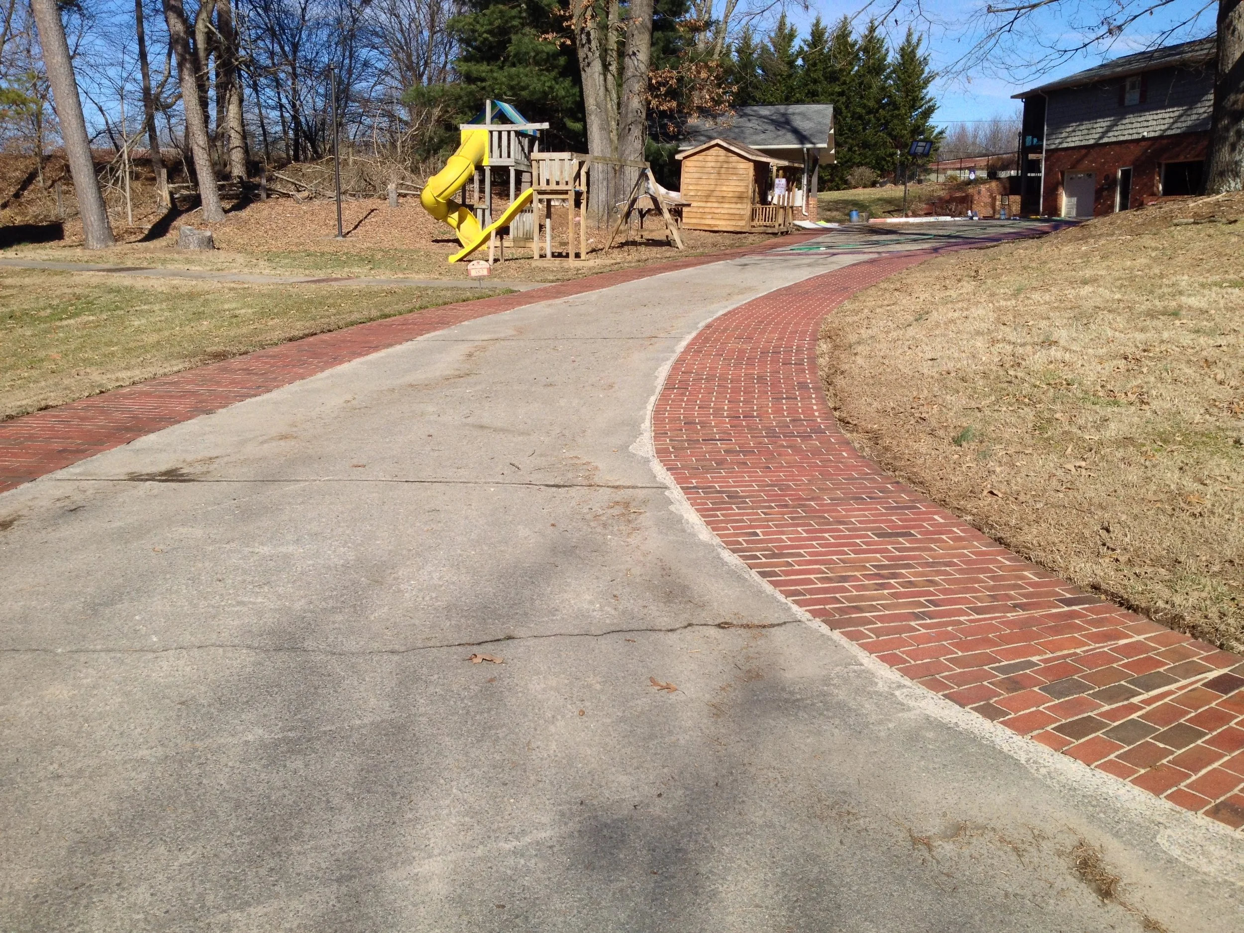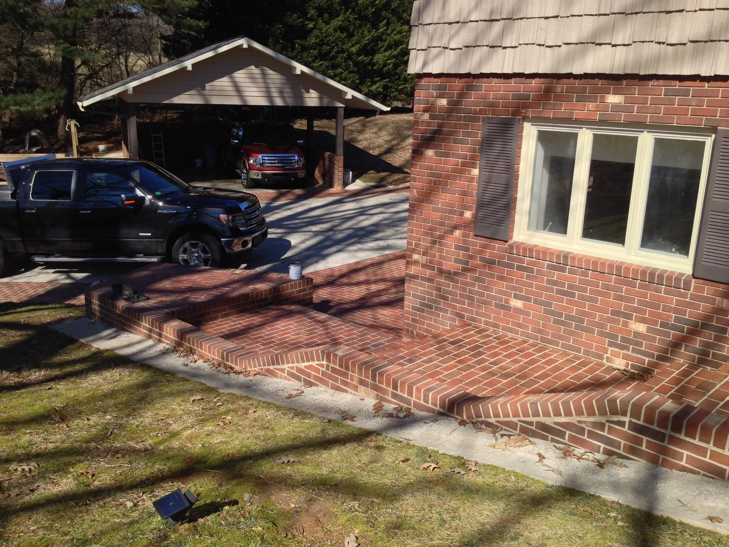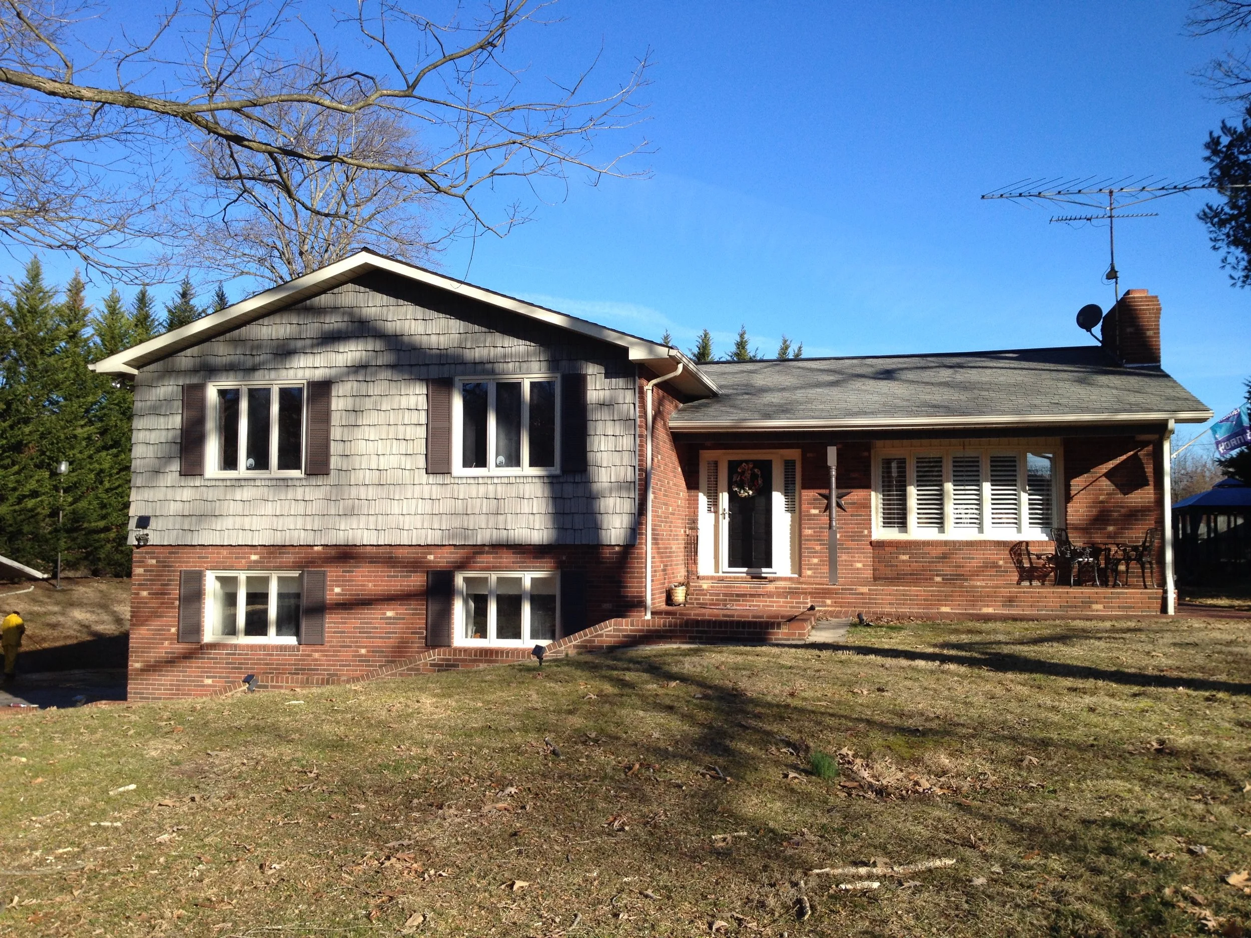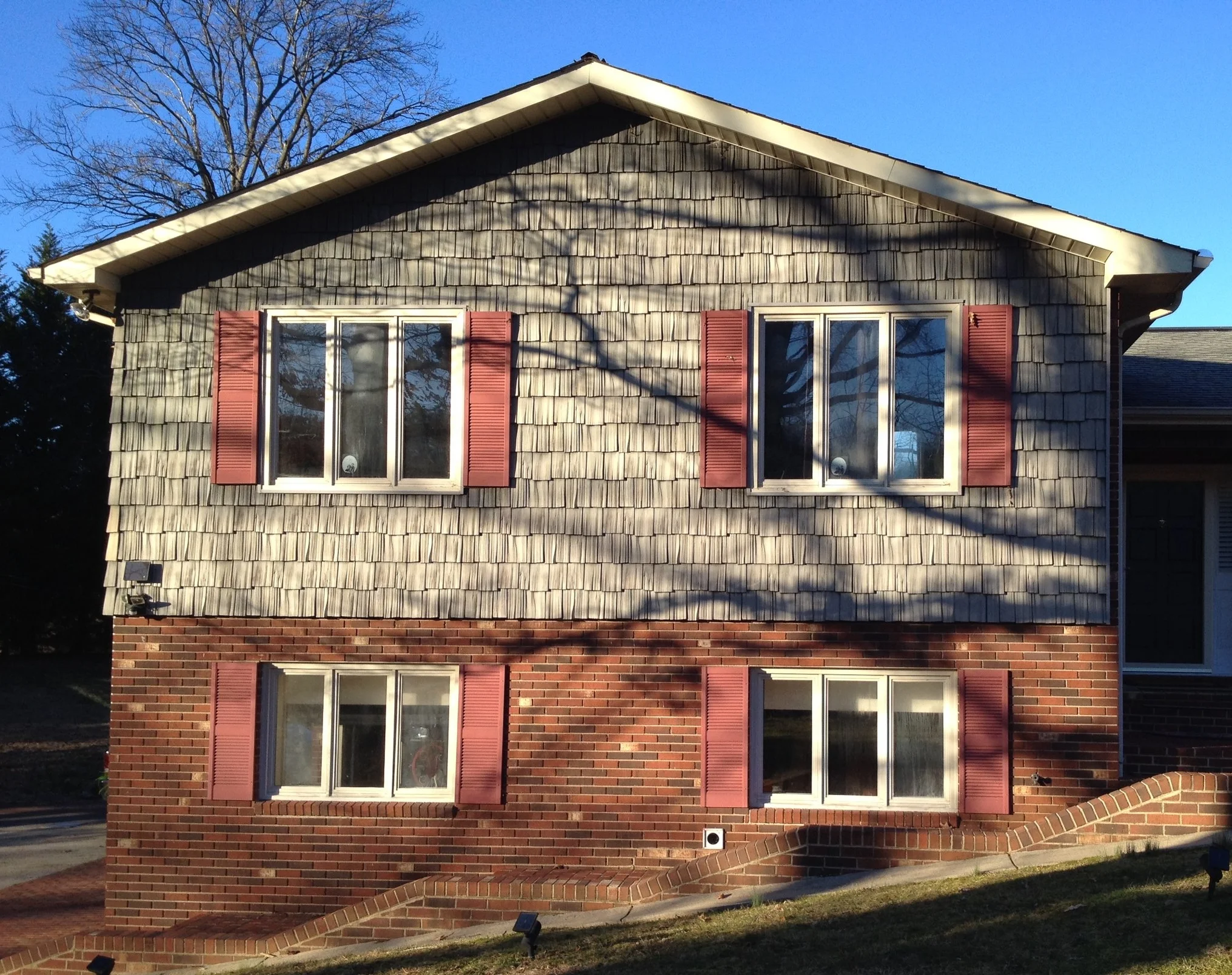 We didn't create any major transformations here, but this large and lovely home was renovated to repair and restore and update with new colors to refresh the home and add increased functionality and curb appeal. We restored and repaired the brick, updated with new colors and for all siding, trim, windows and doors, repaired and replaced windows and doors, repaired exterior trim and repainted the entire exterior, as well as did repairs to and restored the walkways, driveway and the rest of the property's exterior.