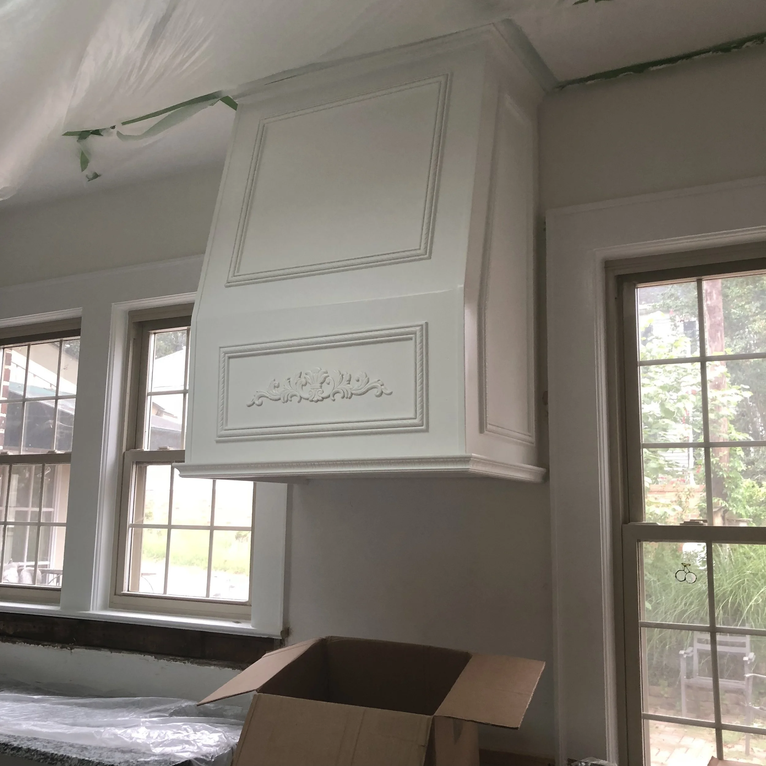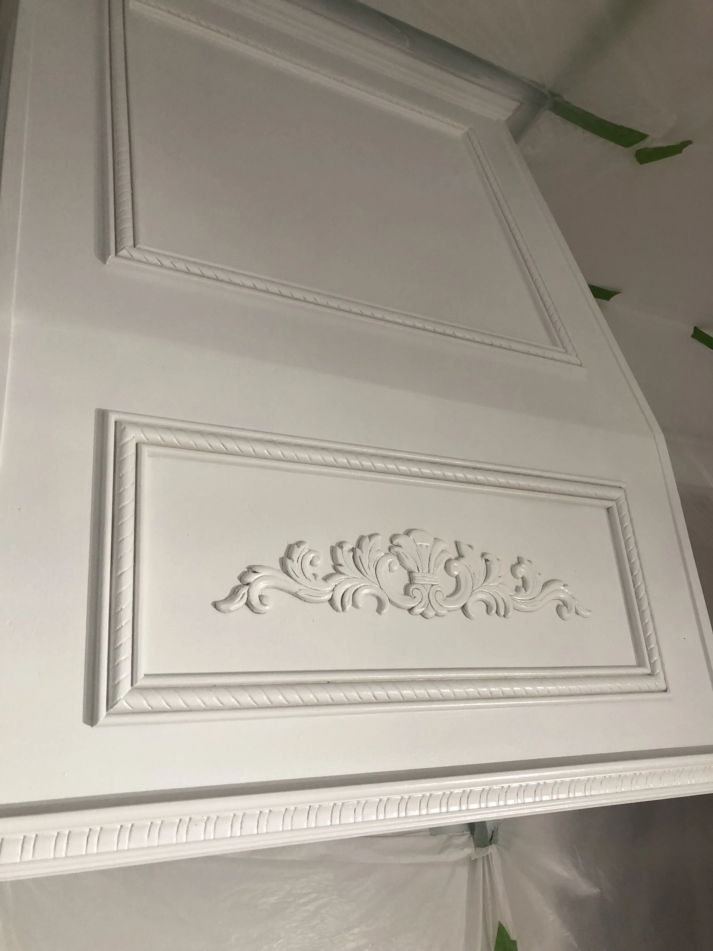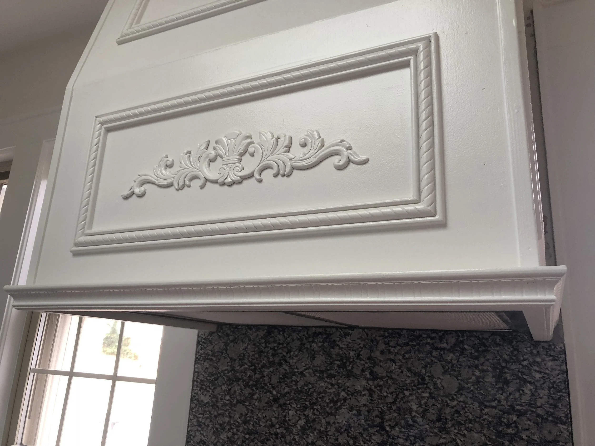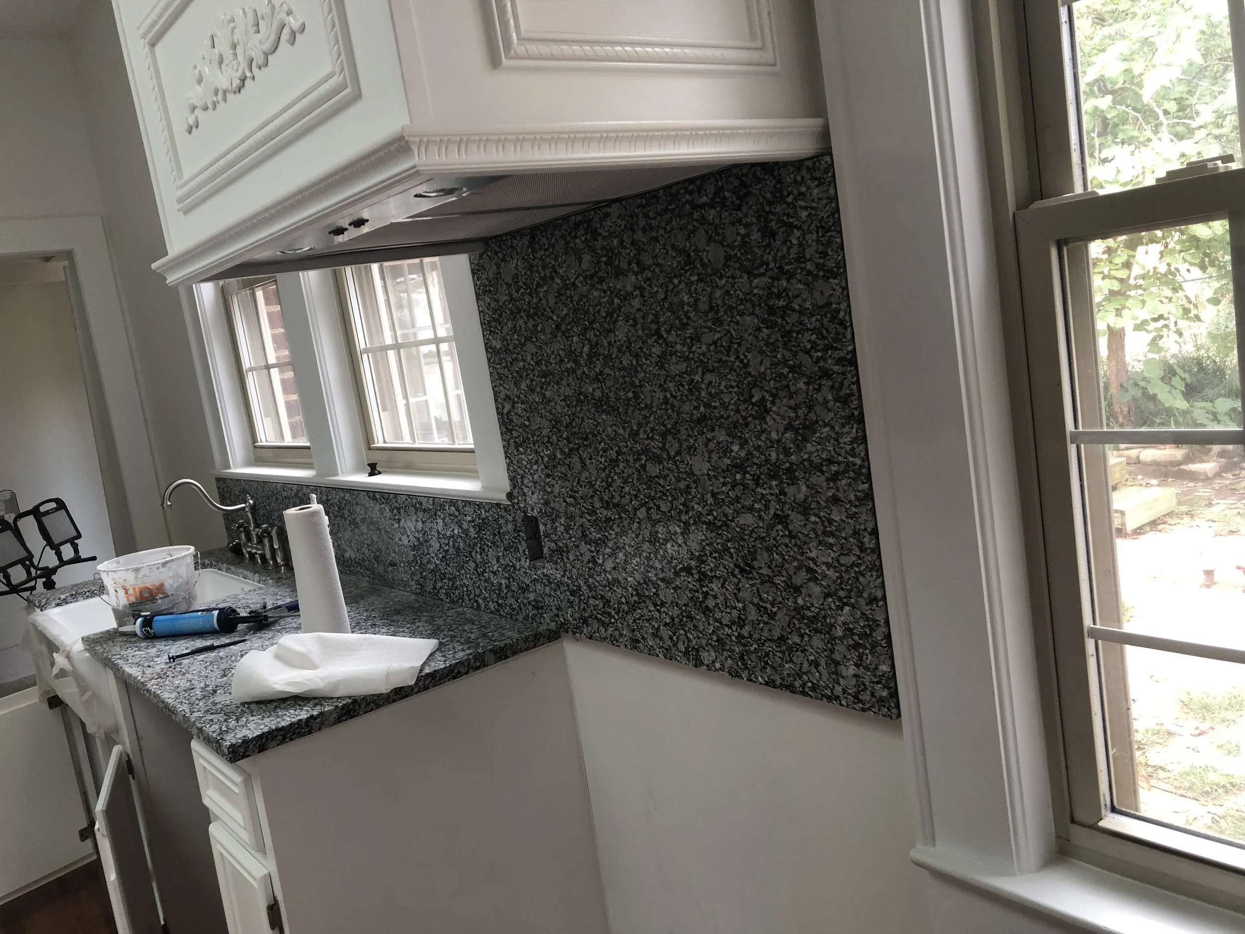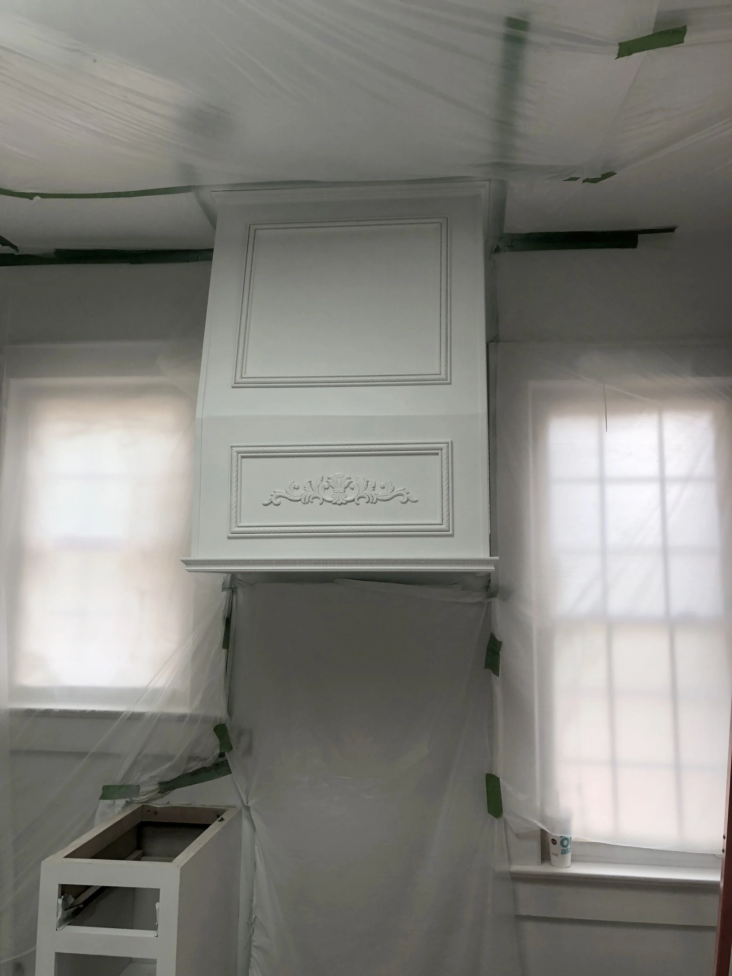The client initially thought she wanted a white and bold dark blue kitchen, then toyed with white and gray, then various hues of soft whites, then settled on the creamy all white colors we arrived at end in the end. The cabinets were painted Sherwin-Williams SW 7757 High Reflective White and her custom-built hutch was repainted in the same hue and had doors added. The walls are Sherwin-Williams SW 7566 Westhighland White and the trim is also High Reflective White, Westhighland White is a very creamy white that balances the true bright white of the cabinets and trim.