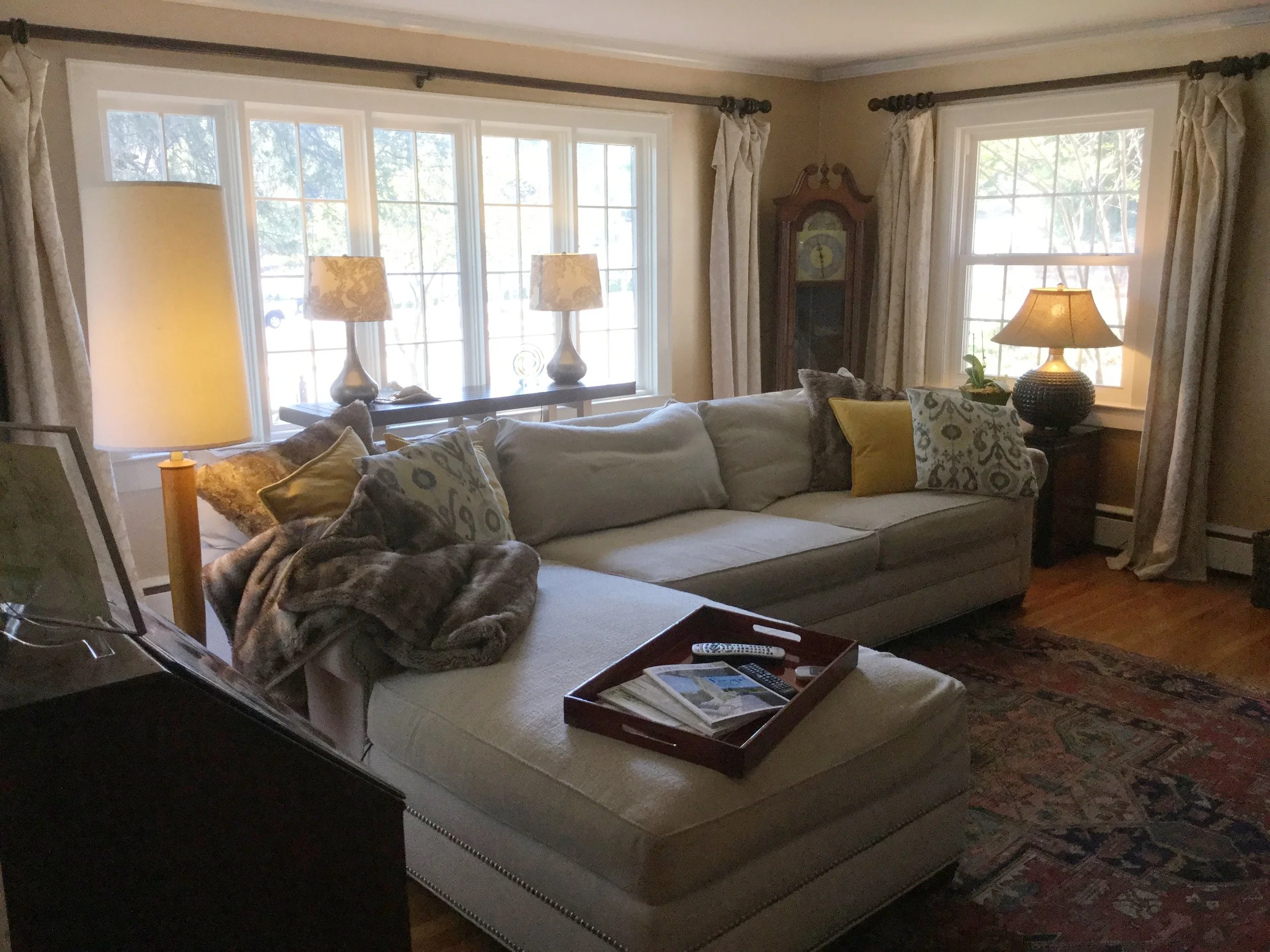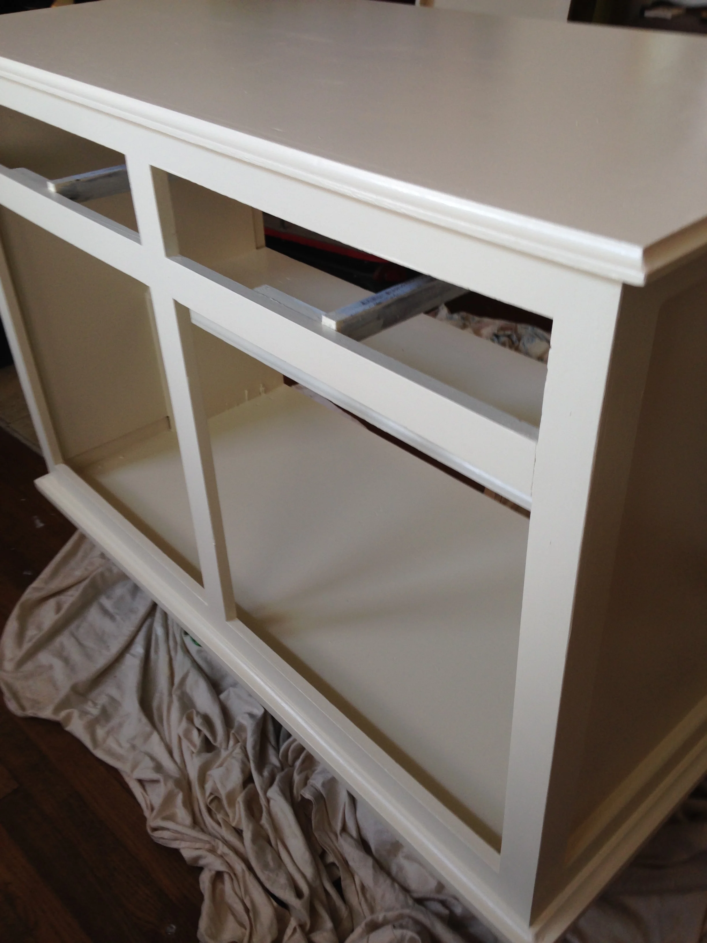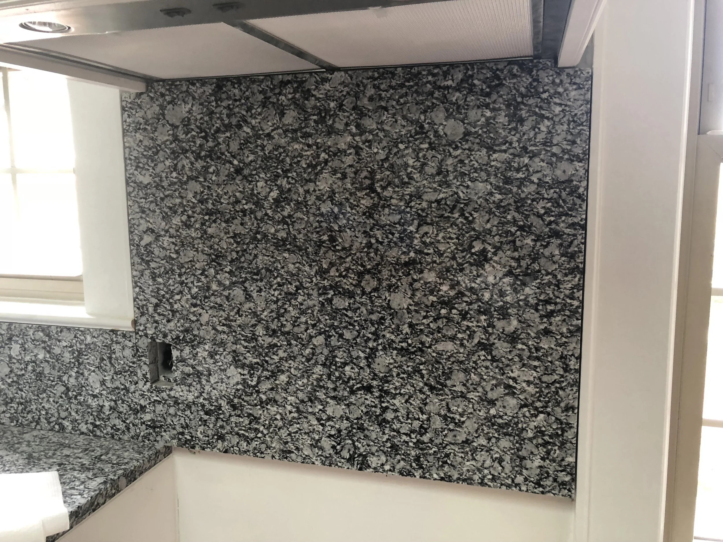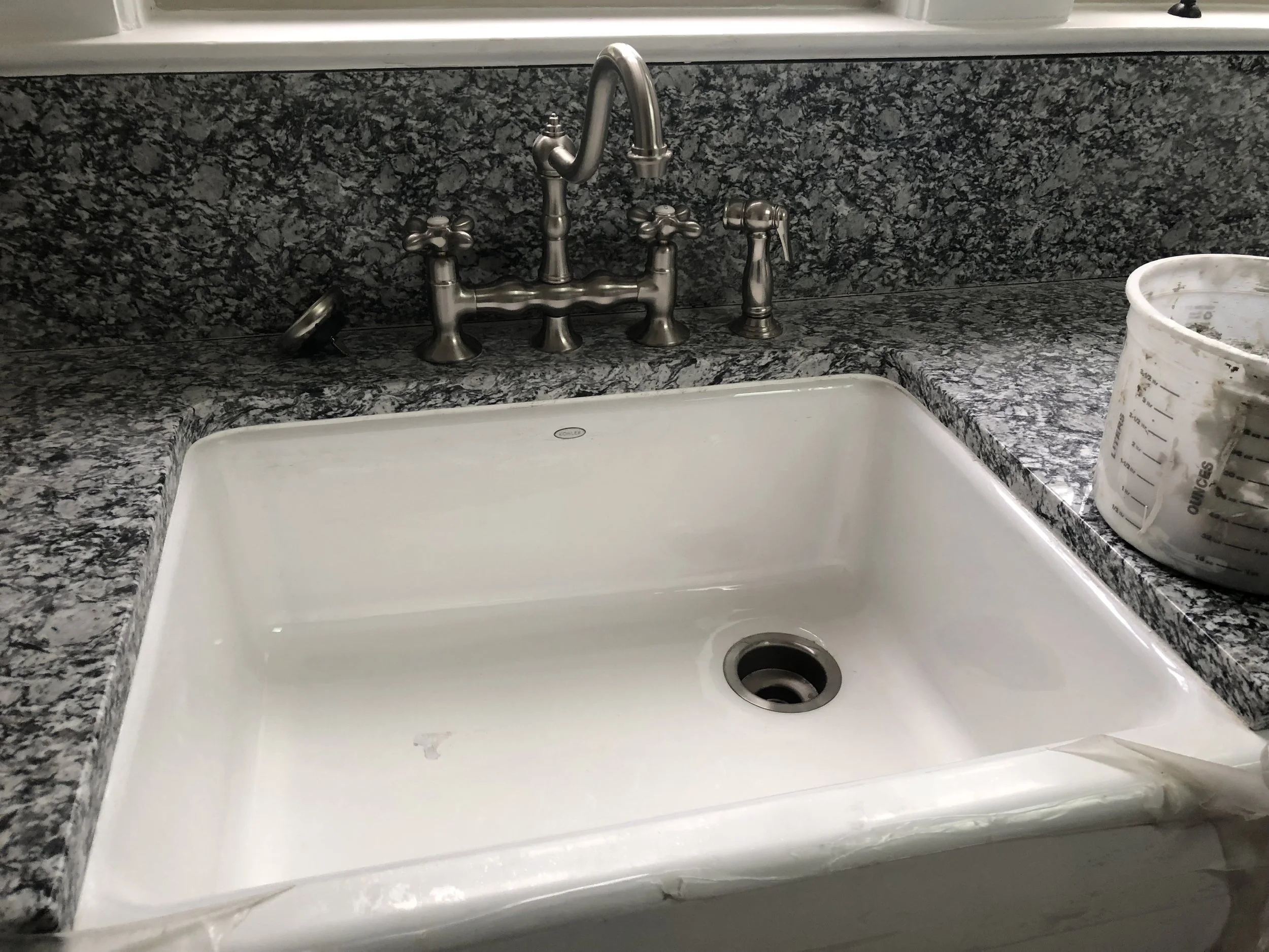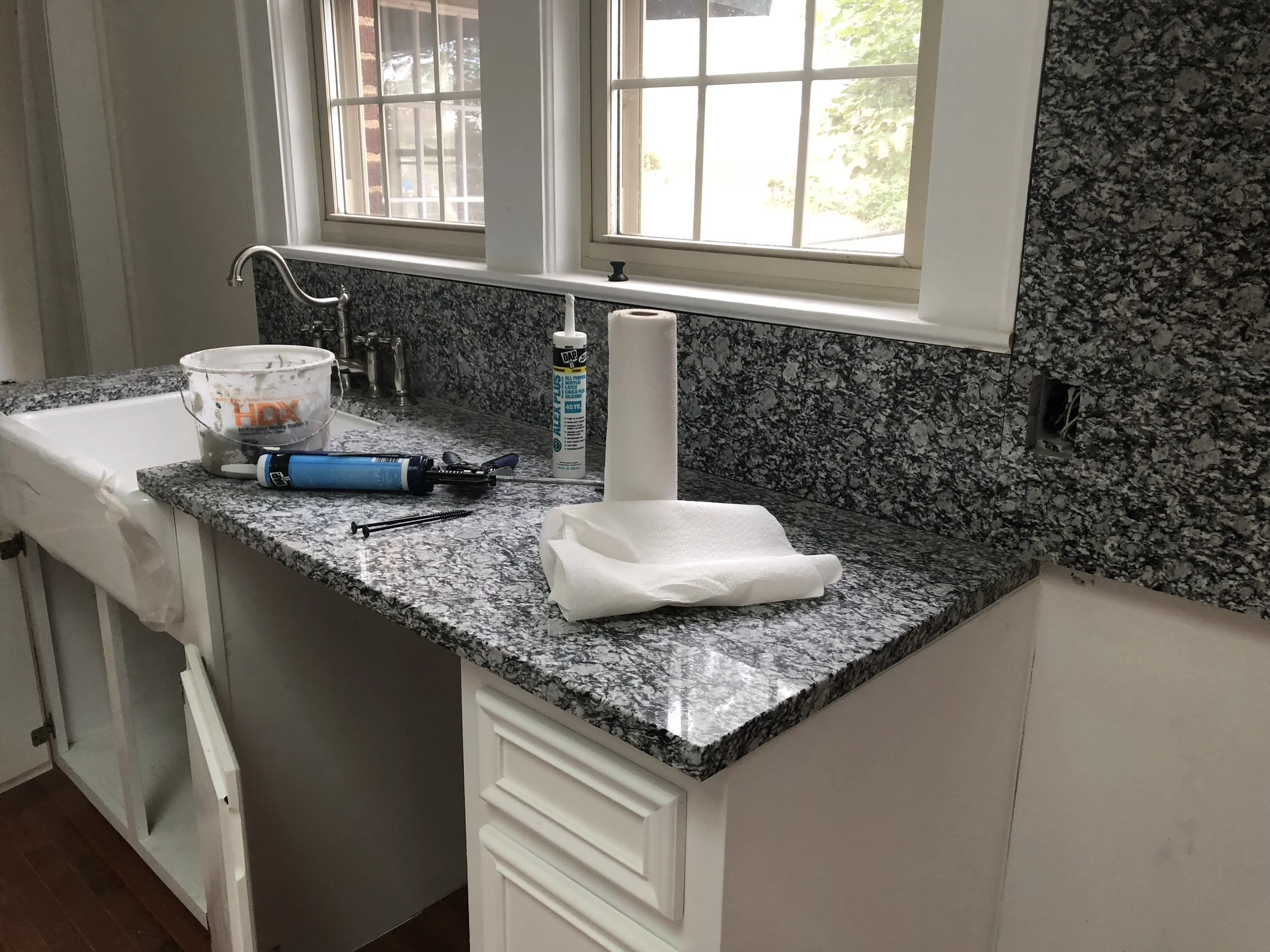 The client initially thought she wanted a white and bold dark blue kitchen, then toyed with white and gray, then various hues of soft whites, then settled on the creamy all white colors we arrived at end in the end. The cabinets were painted Sherwin-Williams SW 7757 High Reflective White and her custom-built hutch was repainted in the same hue and had doors added. The walls are Sherwin-Williams SW 7566 Westhighland White and the trim is also High Reflective White, Westhighland White is a very creamy white that balances the true bright white of the cabinets and trim.