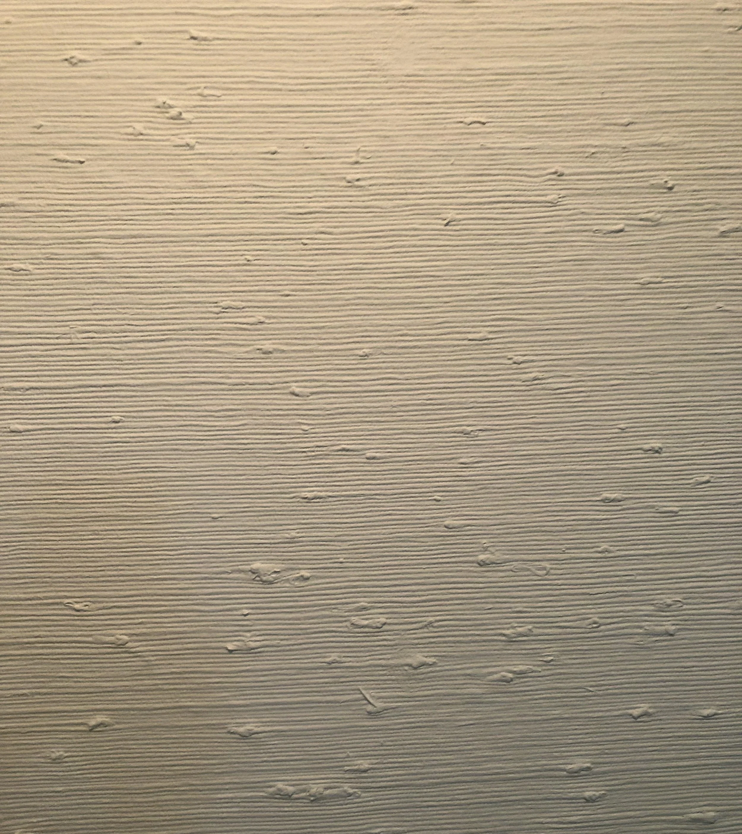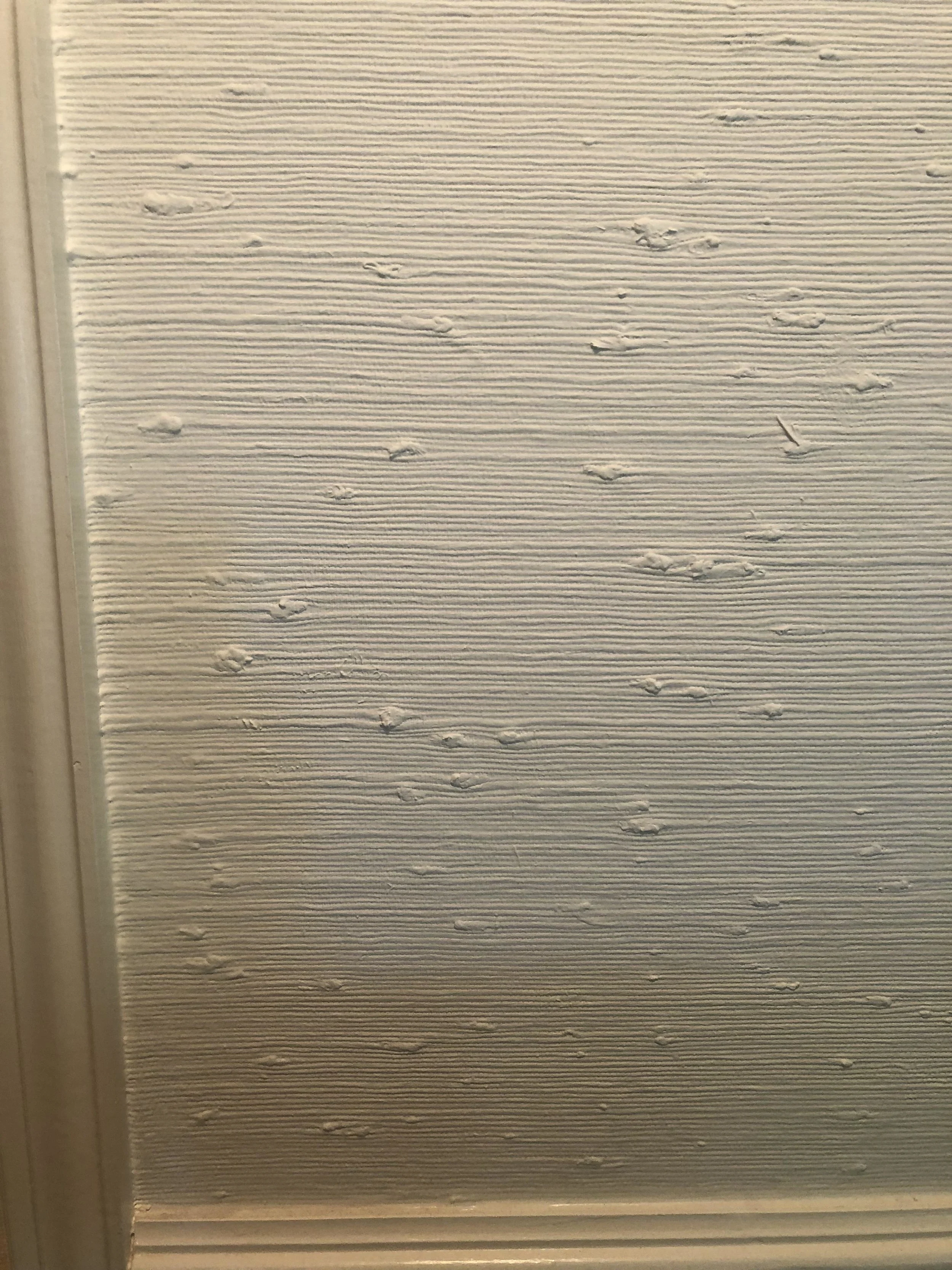I want to add a little architectural detailing to hide the seams in the beadboard used for the ceiling. At one time grasscloth covered the walls of the interior hallway and it has been left there and painted over several times. We painted over it to get rid of the pastel blue. Although I would have preferred the original grasscloth, I quite like it and the texture it adds, so I will probably just paint over it again as well.